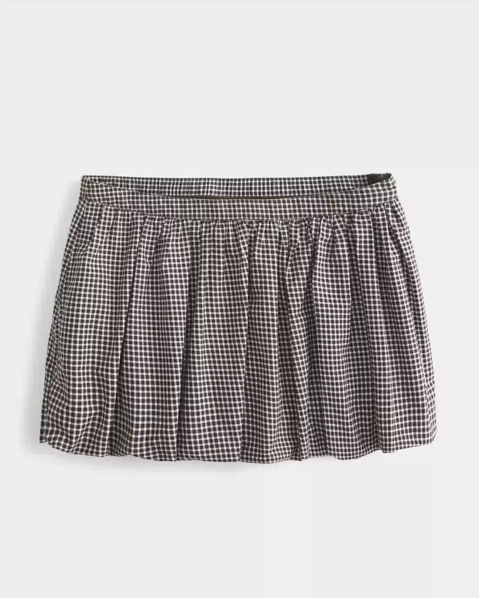 A cute and comfy mini skirt in soft plaid fabric, designed with a bubble silhouette. Imported.
