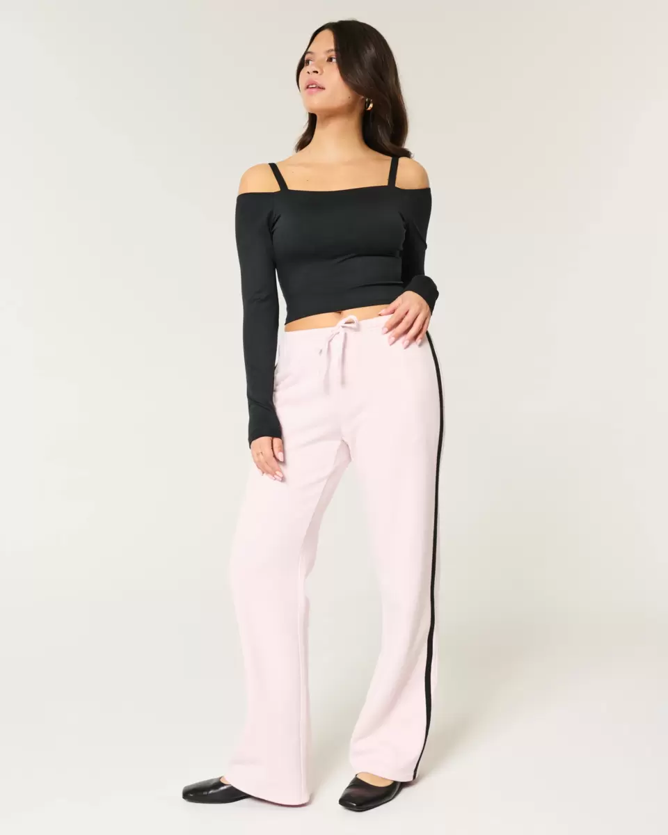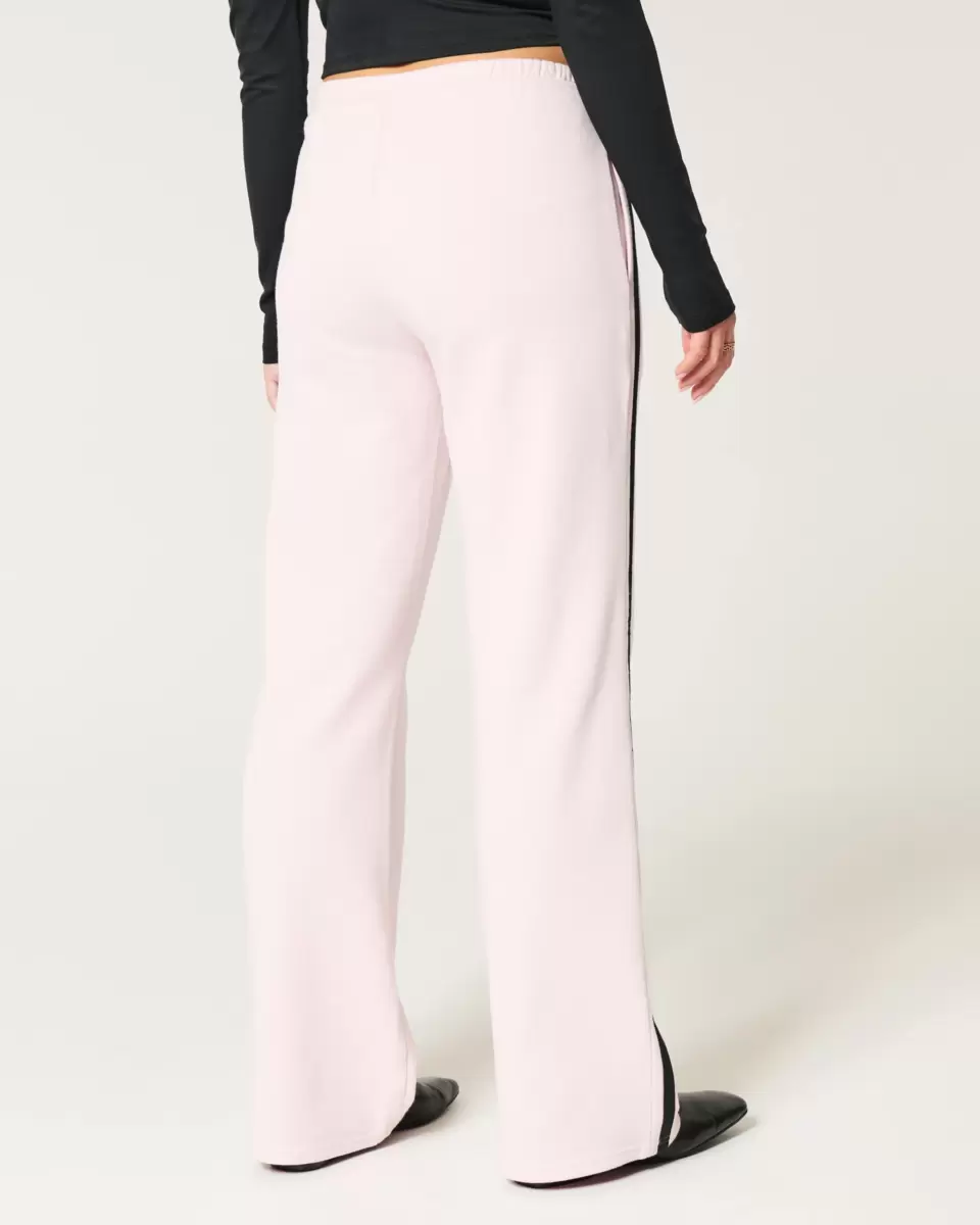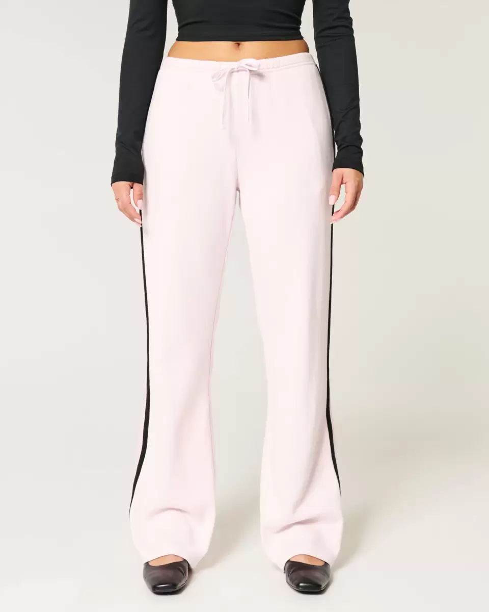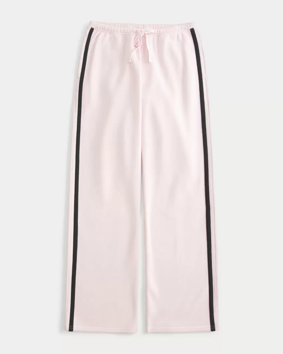 Super soft fleece sweatpants with a straight leg and sporty stripes along the sides. Soft drawstring waist, pockets. Imported.
