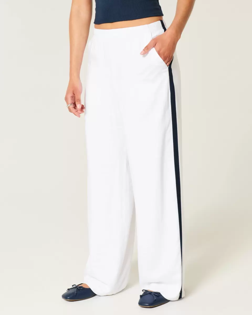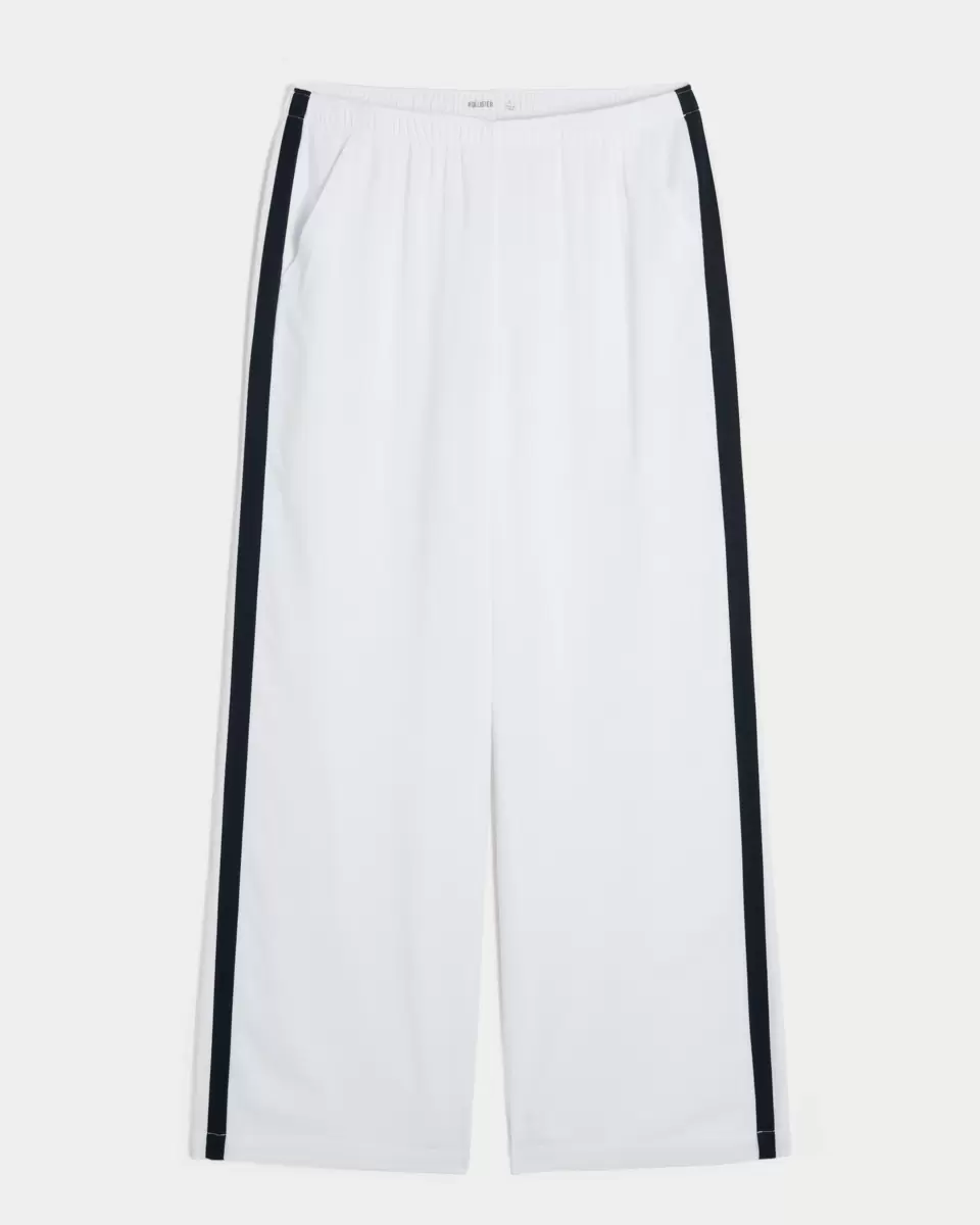 Super comfy pants designed with a banded adjustable-rise waistband and baggy leg. Striped sides, pockets. Imported.