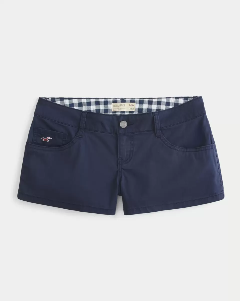Cute and comfy twill mini shorts designed with an ultra low-rise waist. Embroidered logo icon, pockets. Imported.