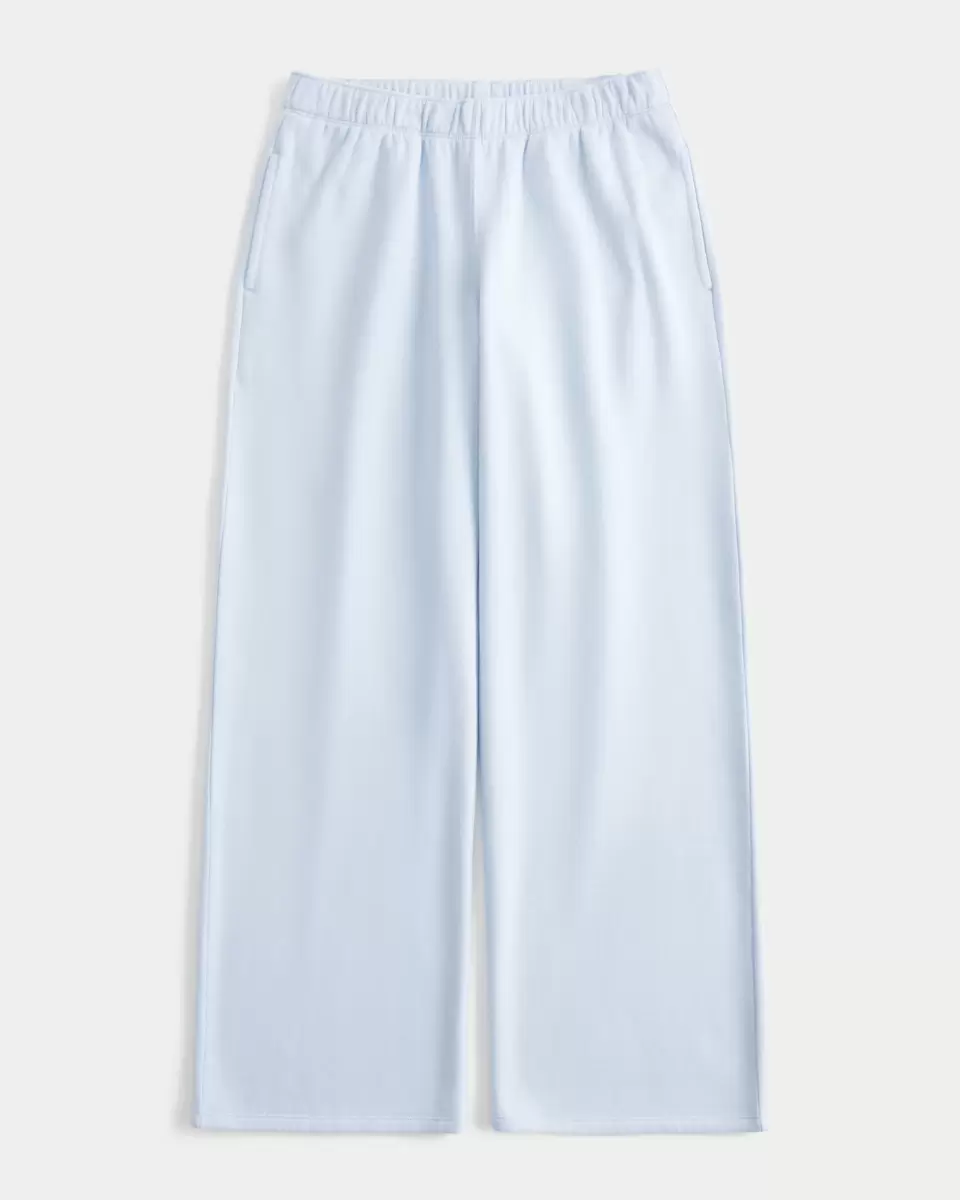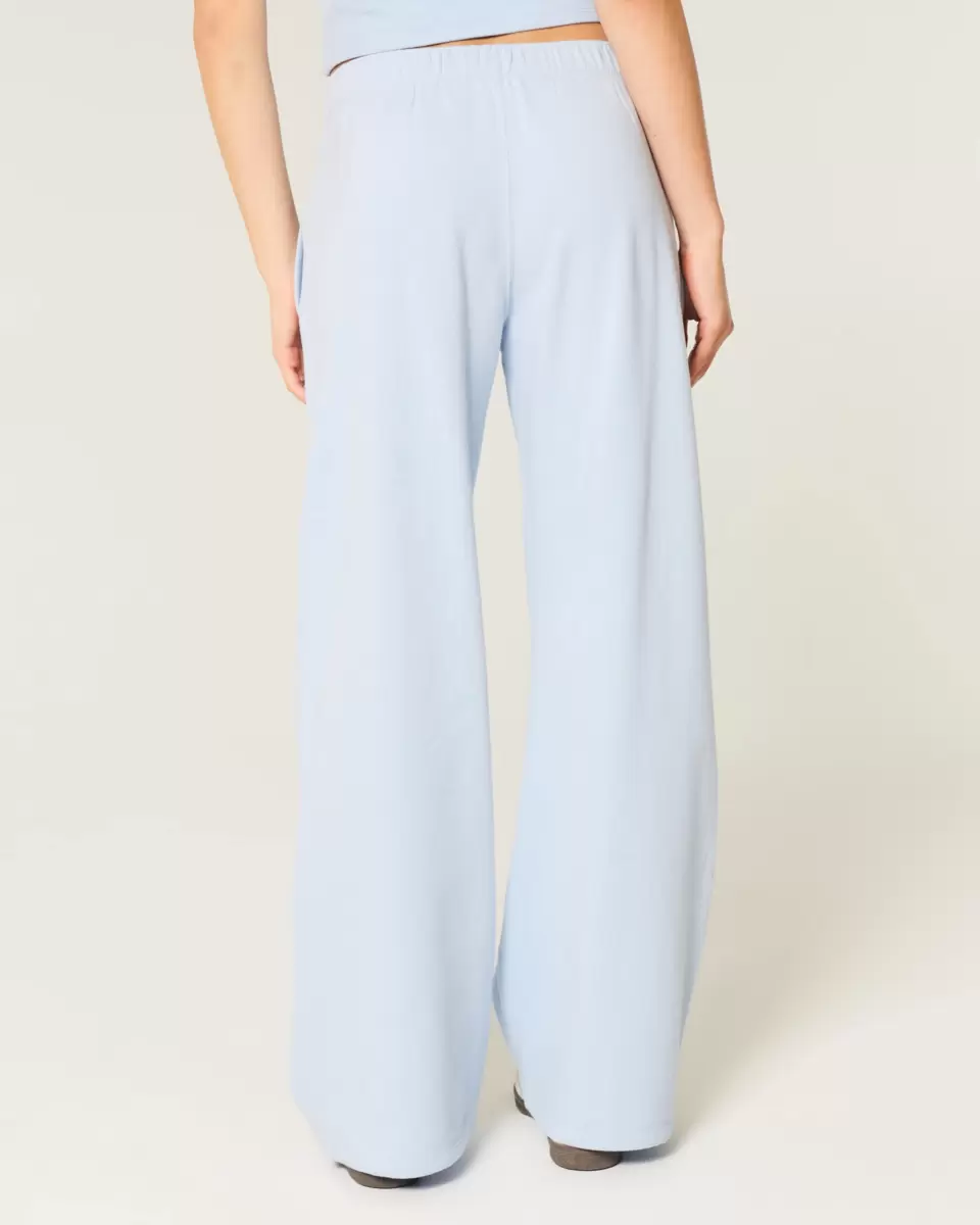 Super soft fleece sweatpants designed with a wide-leg silhouette and mid-rise waist that can be adjusted by folding the waistband. Pockets, banded waist. Imported.