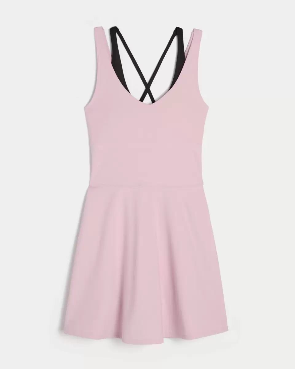 This super cute dress is designed in our breathable, 4-way stretch, moisture-wicking Boost fabric with a super soft, brushed feel. Layered straps, built-in shelf bra with removable pads, built-in shorts with pocket. Imported.