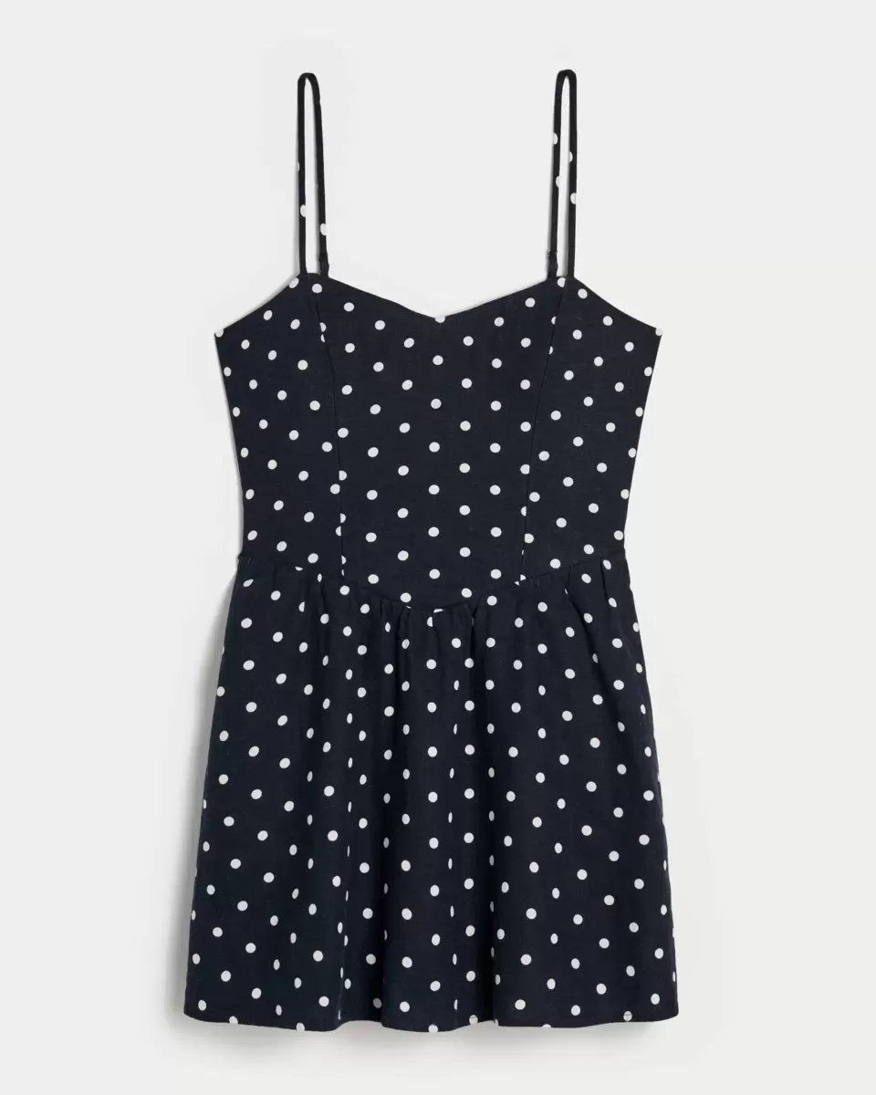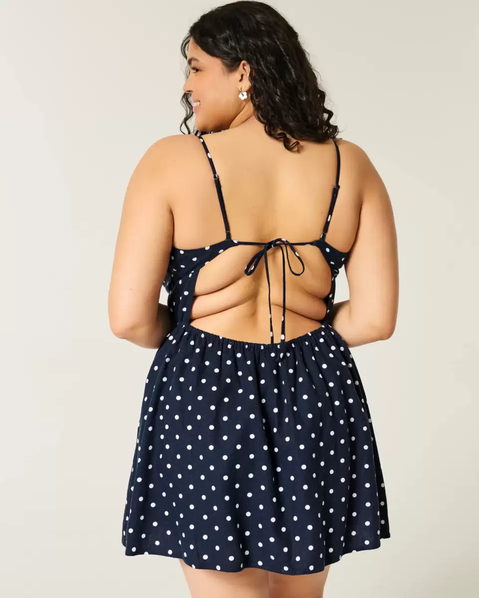 This super easy and cute linen-blend mini dresses has a pretty open back detail, removable pads and built-in shorts. Pockets. Imported.