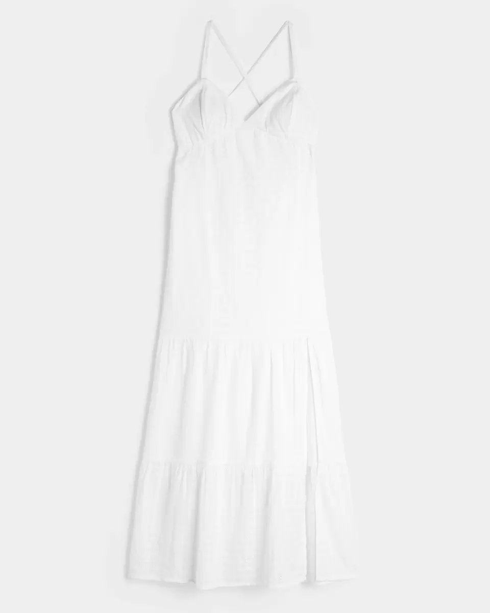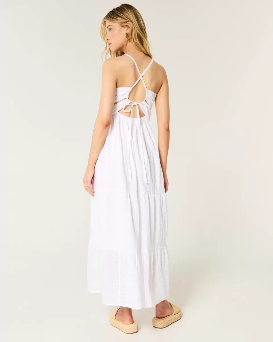 A pretty and super soft maxi-length dress with cross-back straps and an open back detail. Split hem detail. Imported.