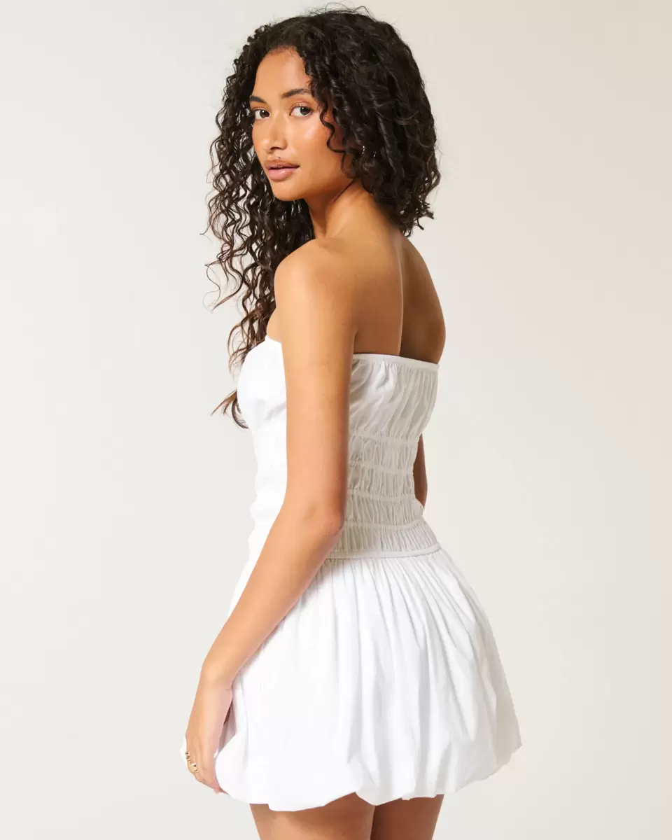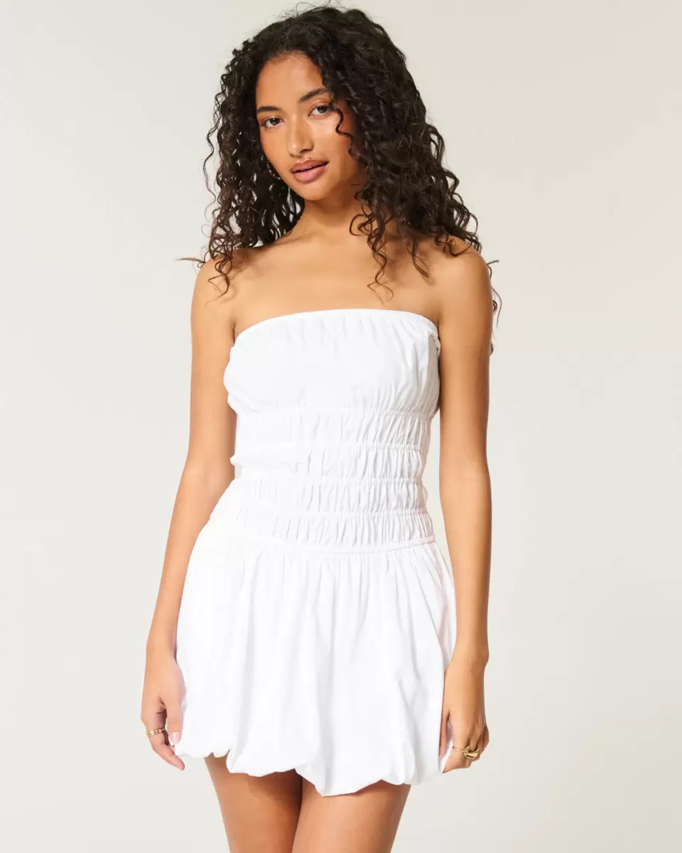 A pretty and super soft mini dress with a channeled waist and bubble skirt. Strapless. Imported.