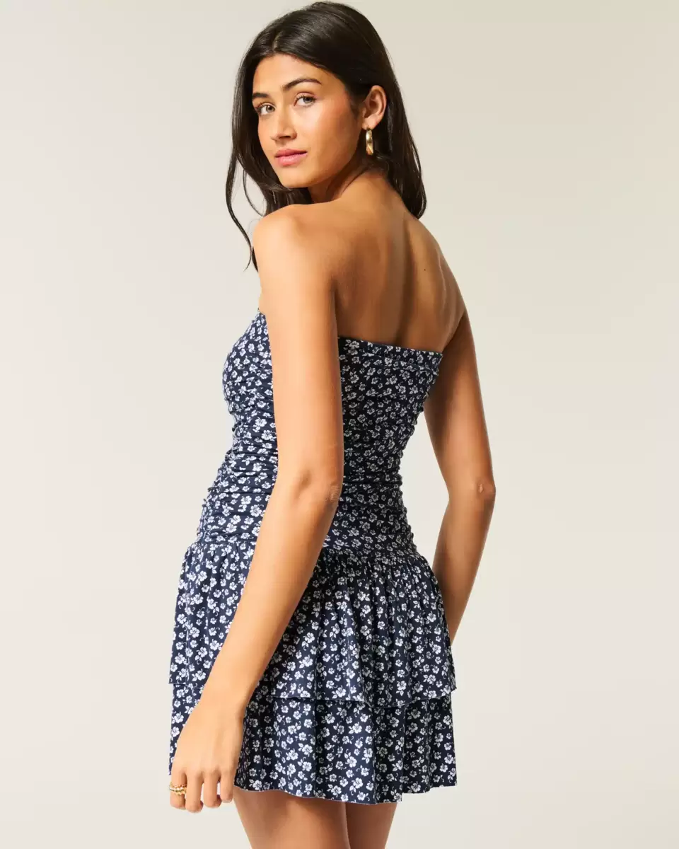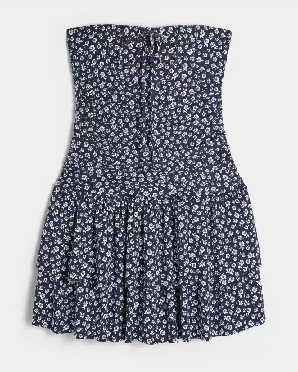 A cute and super soft skort dress in knit fabric with a tiered skirt and tie neckline. Slim through the bodice, built-in shorts. Imported.