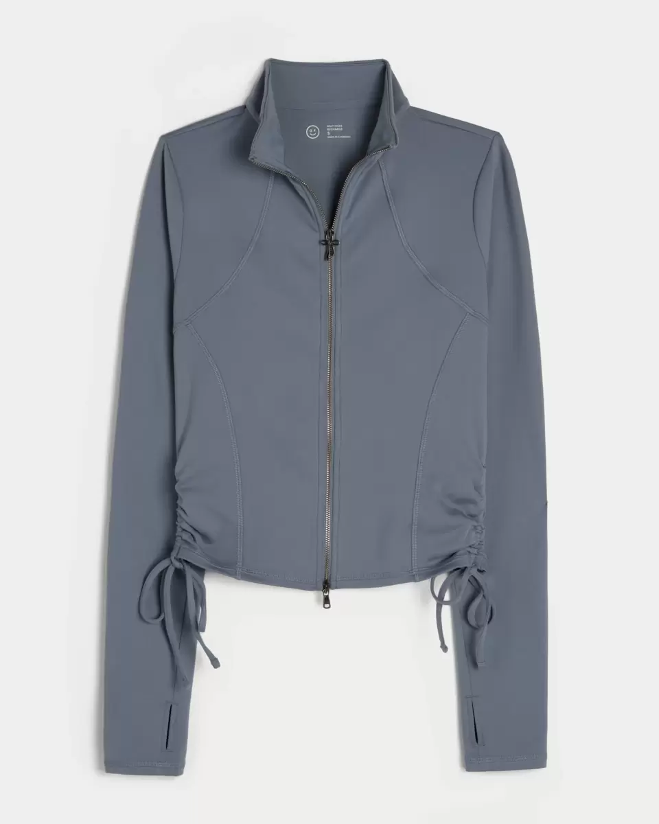 Designed in our breathable, 4-way stretch, moisture-wicking Recharge fabric with a super soft, brushed feel. Double zipper closure, front pockets, long sleeves with thumb openings, side tie details. Imported.