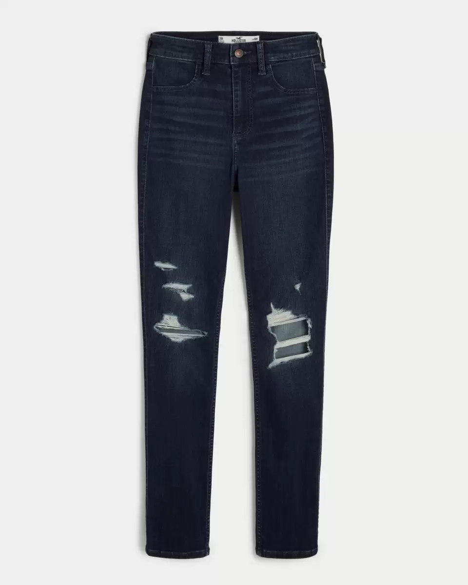 This style fits like a legging, looks like a jean. Designed in Advanced Stretch denim, featuring a flattering high-rise, dark wash, fading, whiskering and ripped detailing. Imported.