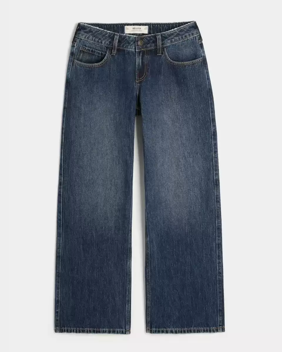 Comfortable denim jeans in a dark wash, designed with a flattering low-rise waist and baggy leg. Fading. Imported.