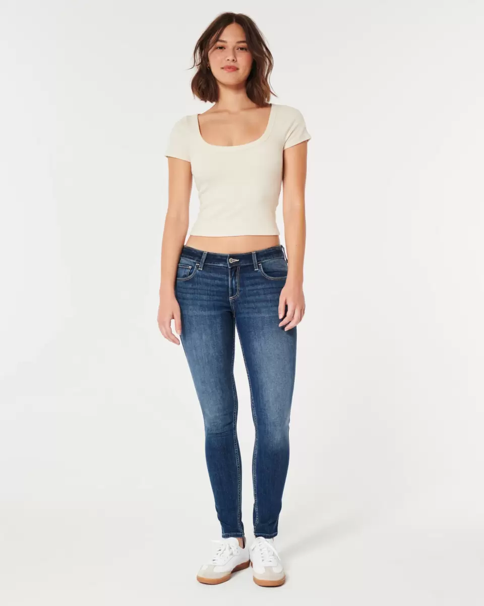 Designed in our signature slim fit with our super skinny leg opening, these dark wash jeans feature comfy denim with a flattering low-rise waist, subtle fading and whiskering. Plus, they’re made with new smoothing pockets. We got tired of that awkward extra fabric that bunches up when you sit down, so we replaced it with a smoothing panel. Real smooth, we know. Imported.
