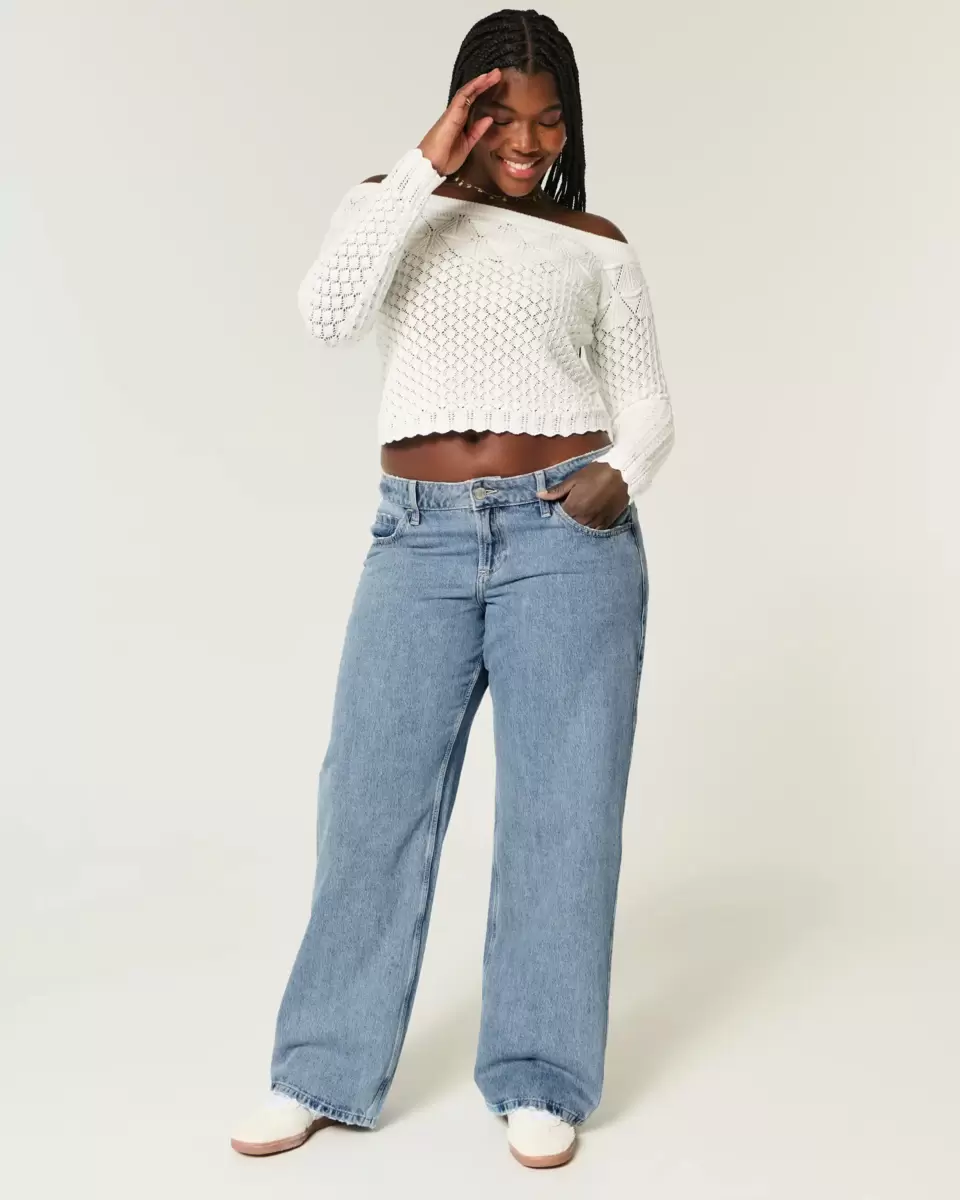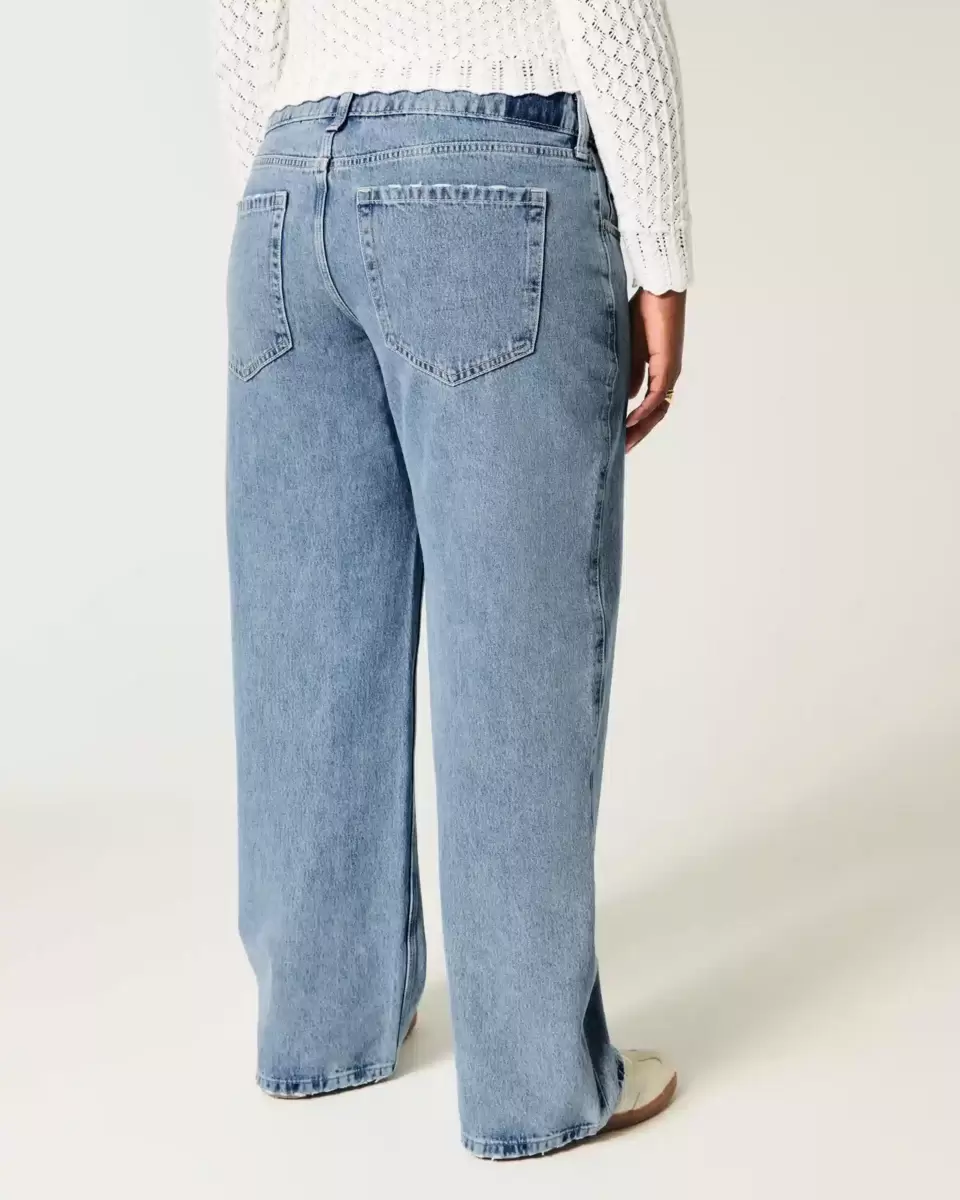 Our curvy fit eliminates waist-gapping with a proportionately slimmer look-good magic waistband and a roomier feel-good fit through the hip and thigh. Classic, comfortable denim jeans in a medium wash, designed with a low-rise waist and baggy leg. Imported.