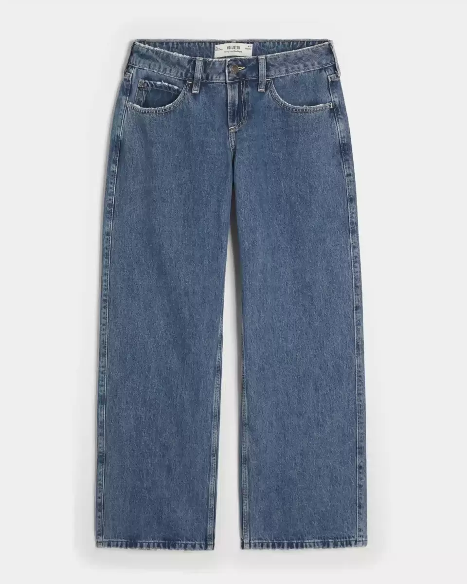 Our curvy fit eliminates waist-gapping with a proportionately slimmer look-good magic waistband and a roomier feel-good fit through the hip and thigh. Classic, comfortable denim jeans in a medium wash, designed with a low-rise waist and baggy leg. Imported.