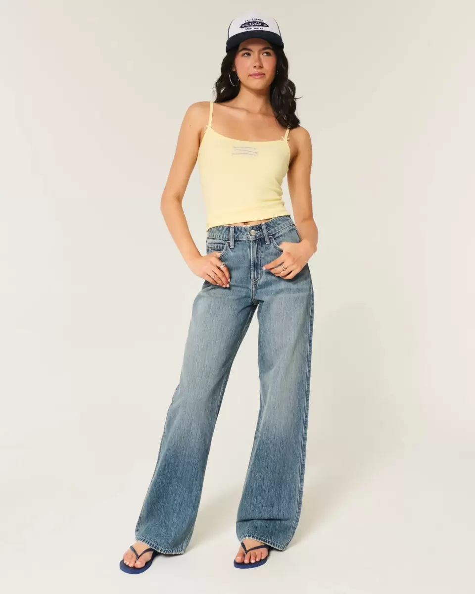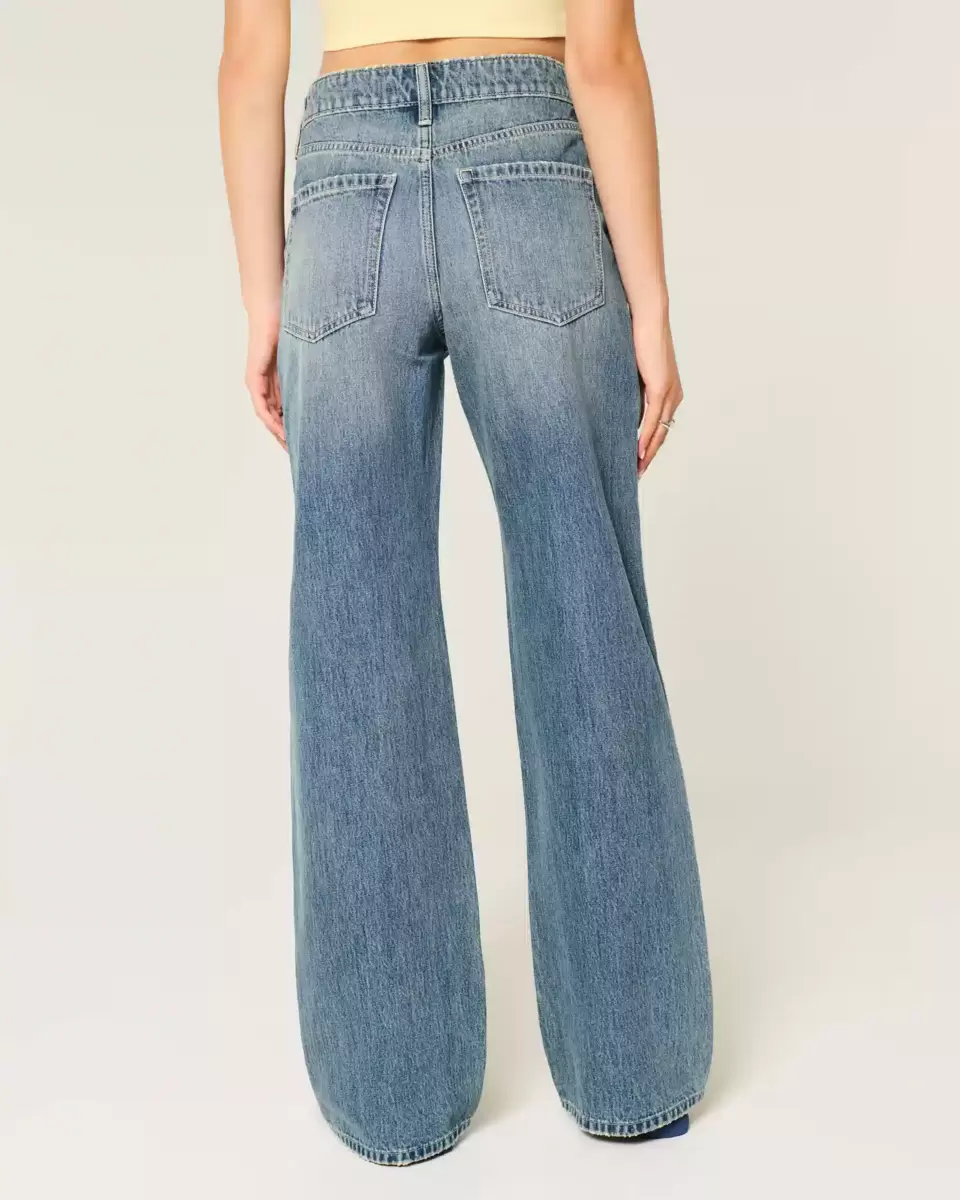 Comfortable denim jeans designed with a flattering high-rise waist and baggy leg. Fading, whiskering. Imported.
