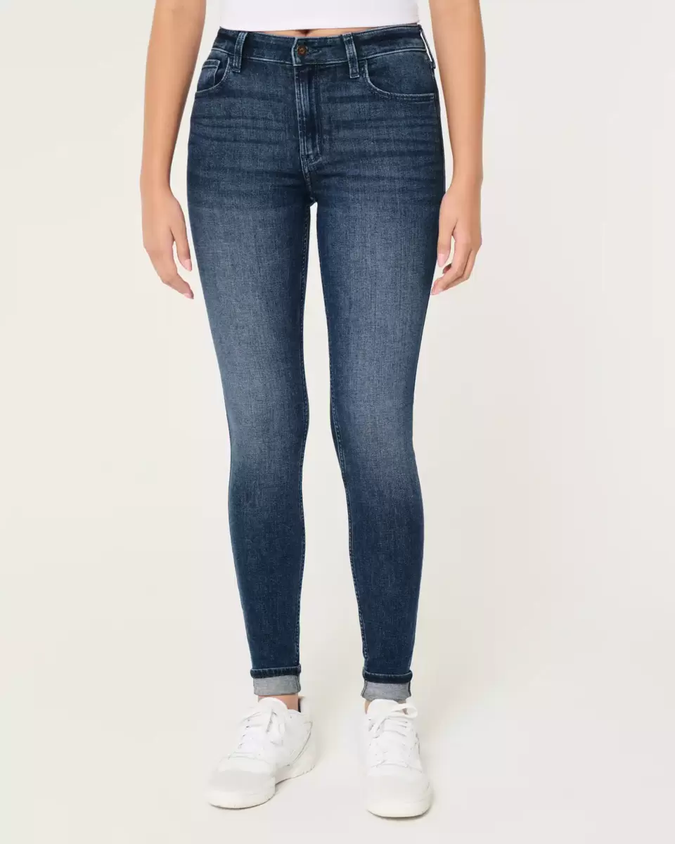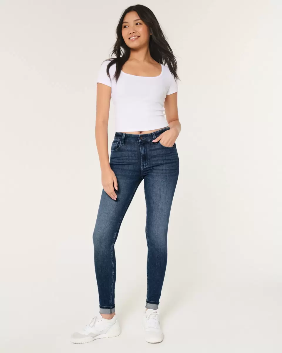 Designed in our signature slim fit, these medium wash super skinny jeans feature fading and whiskering. High-rise waist, cuffed hems, stretch. Imported.