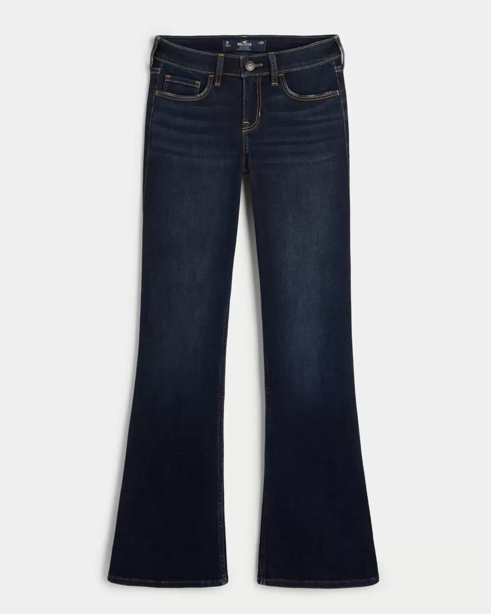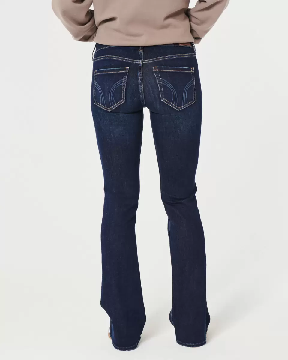 Slim through the thigh with a wider hem below the ankle, these dark wash boot jeans feature a trendy low-rise waist. Imported.