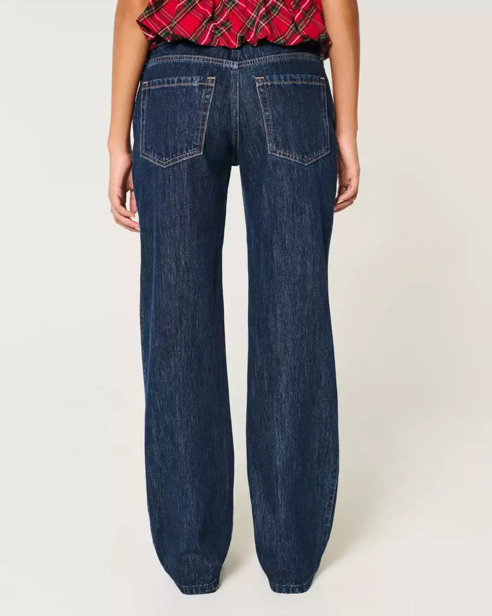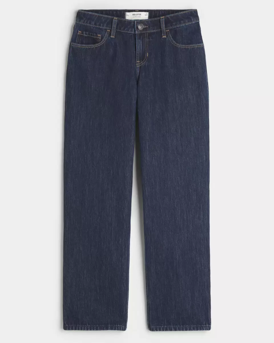 Classic denim jeans in a dark wash, designed with a low-rise waist and loose leg. Imported.