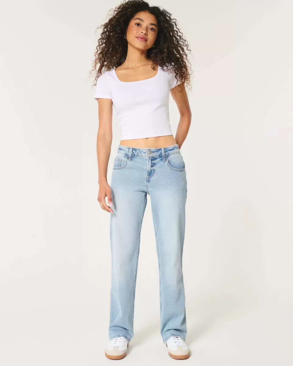 Comfortable jeans in a light wash, designed with a relaxed straight leg. Fading through the thigh, low-rise waist. Imported.