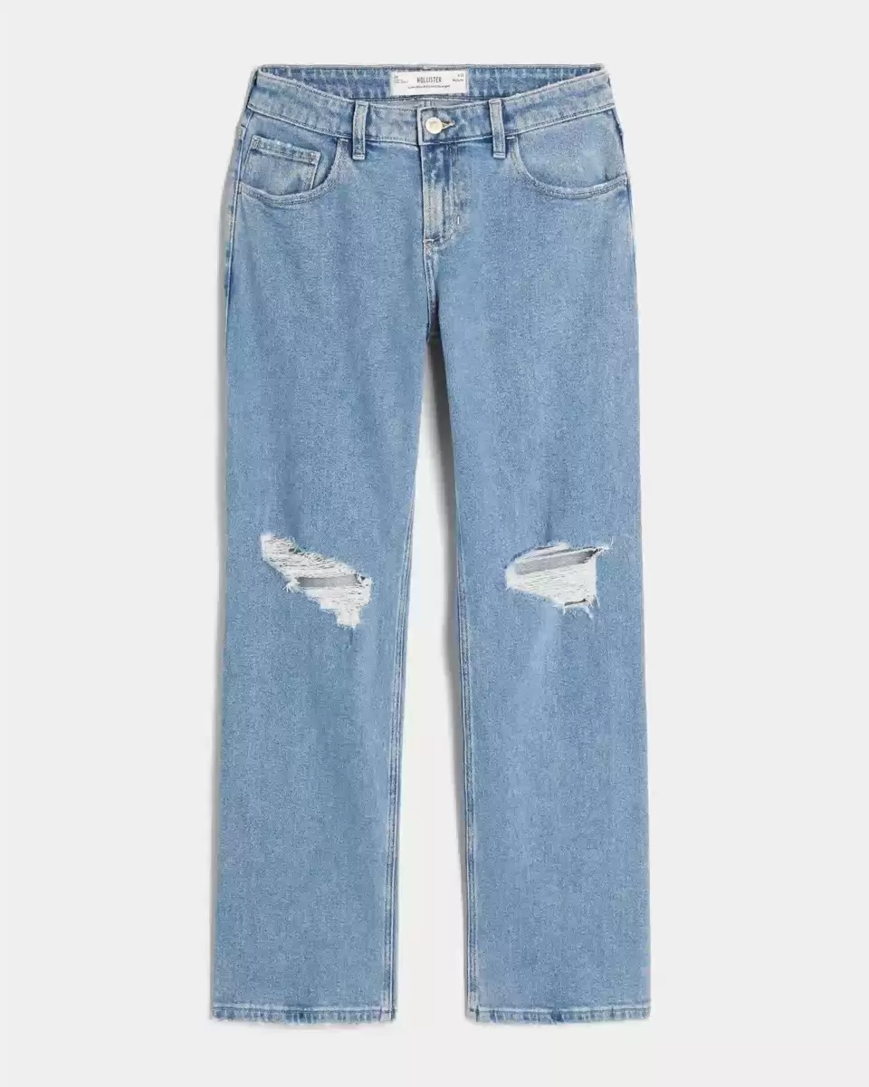 Low-Rise Ripped Medium Wash Relaxed Straight Jeans