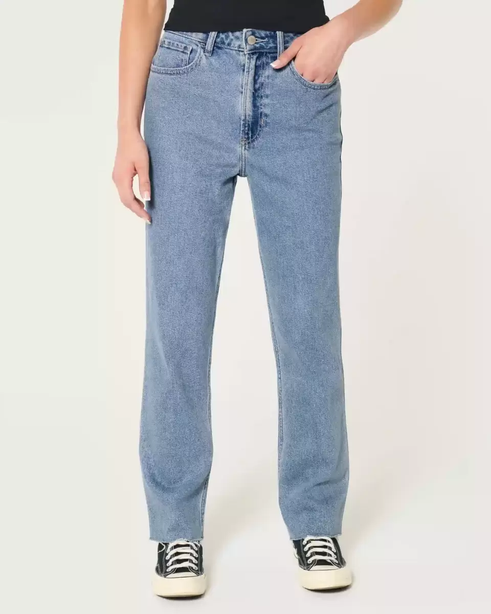 Classic jeans in a medium wash, designed with a straight leg and ultra high-rise waist. Ultra-comfortable Vintage Stretch denim. Imported.
