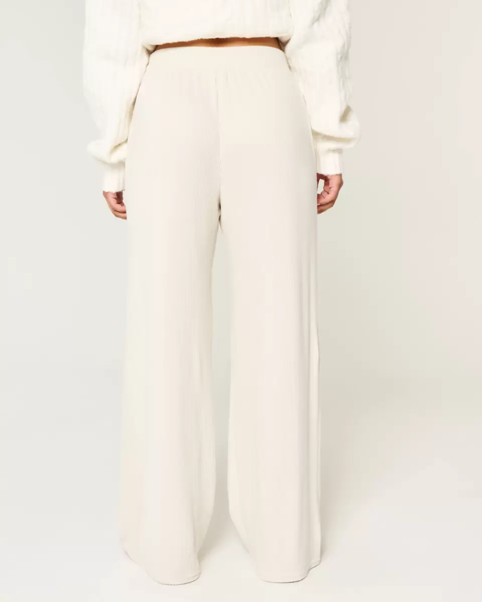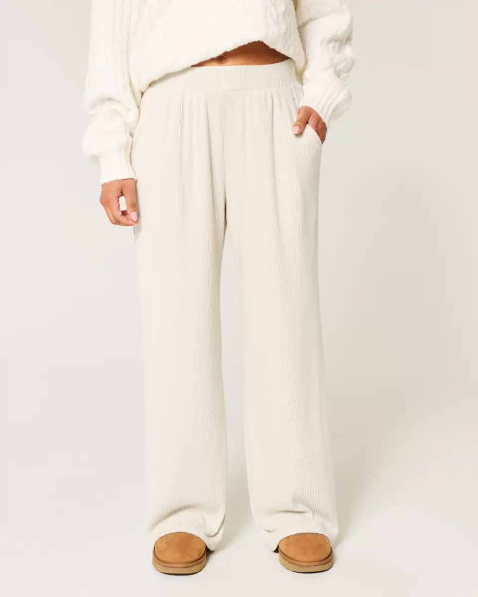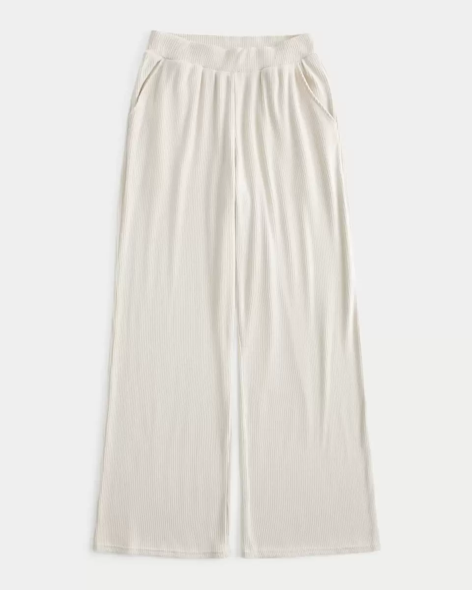 Super soft pants in cozy ribbed fabric, designed with a baggy leg. Pockets, banded waist. Imported.