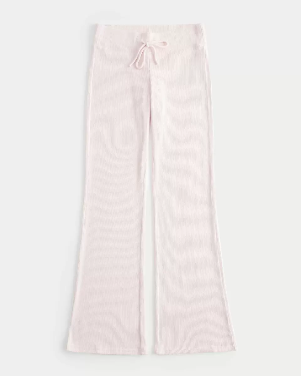 Super soft flare pants in cozy ribbed fabric, designed with a flared leg. Drawstring waist. Imported.