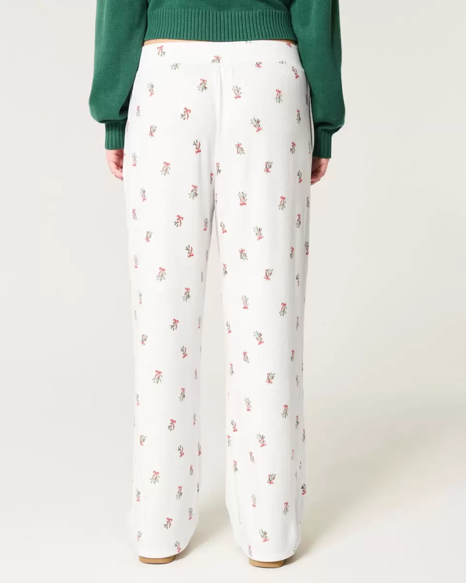 Super soft pajama pants with a banded waist and all-over mistletoe pattern. Wide-leg silhouette. Imported.