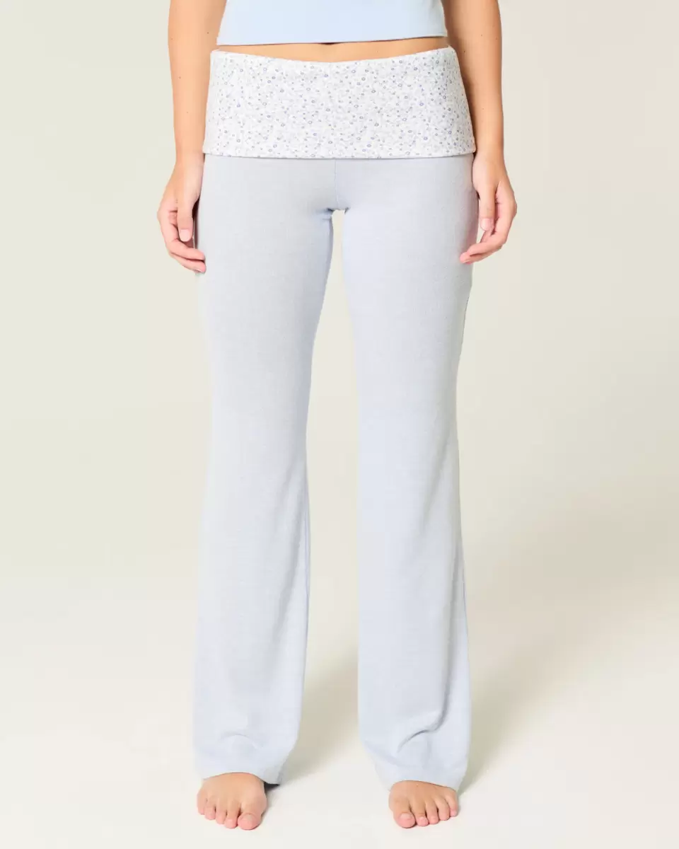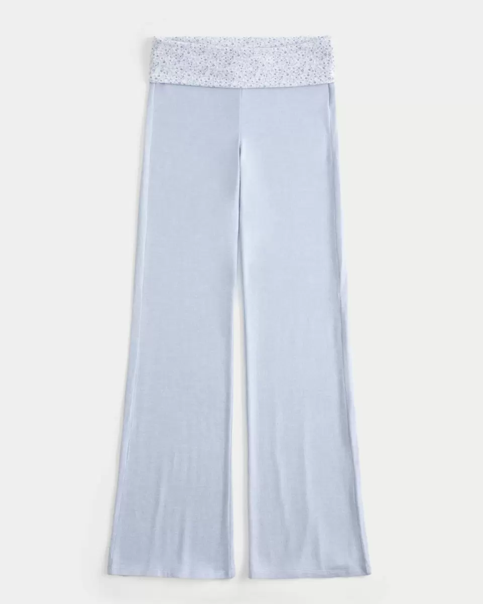 Cozy and super soft knit flare pants with a colorblock foldover waistband. Pockets, adjustable rise. Imported.