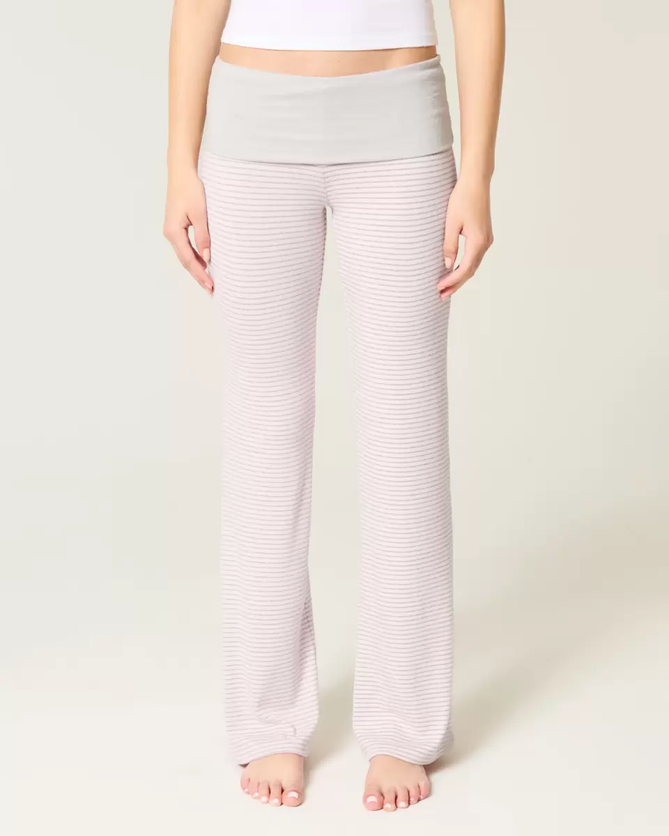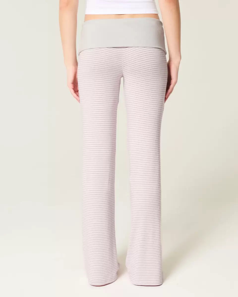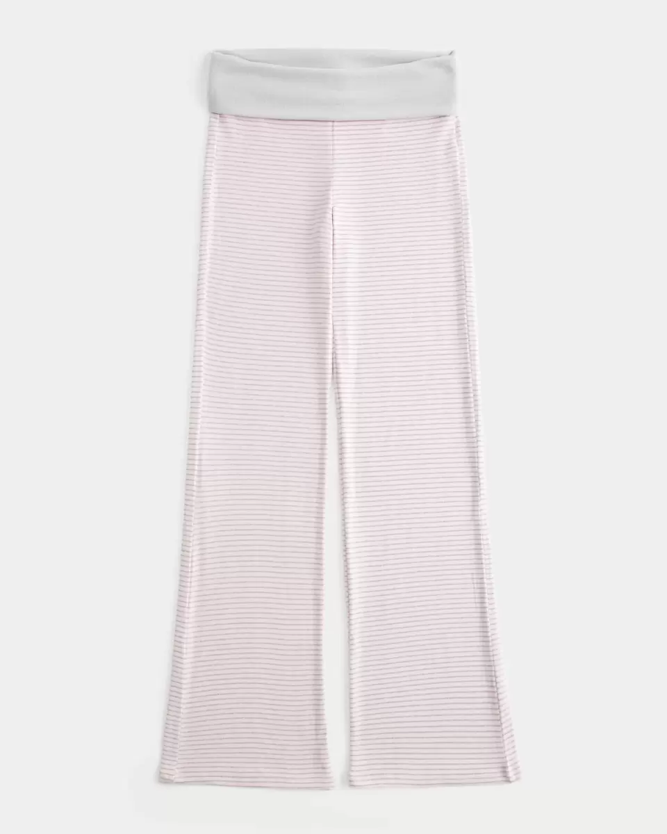 Cozy and super soft knit flare pants with a colorblock foldover waistband. Pockets, adjustable rise. Imported.