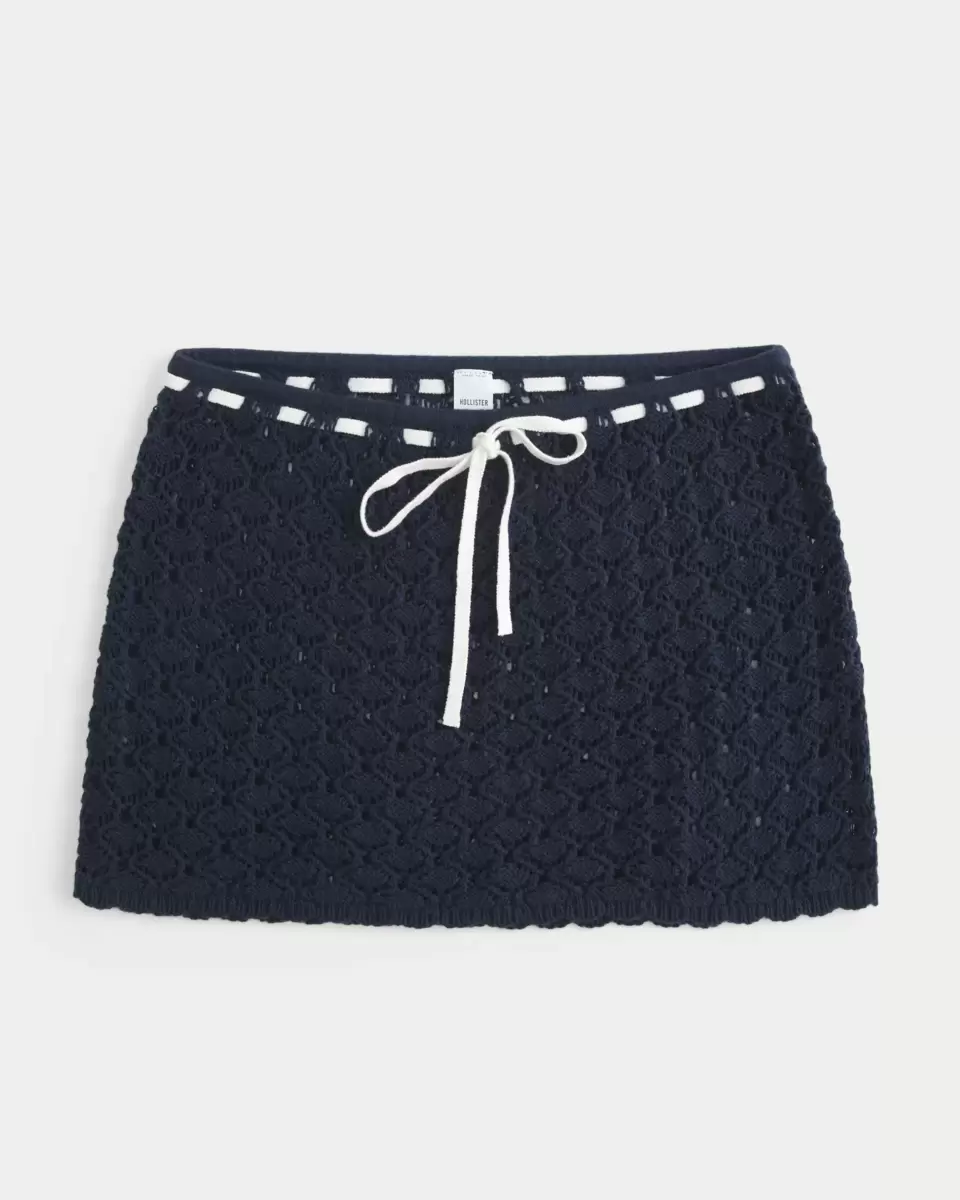This cute and super soft swim cover up skirt is made with pretty crochet-style fabric. Pull-on drawstring waist. Imported.