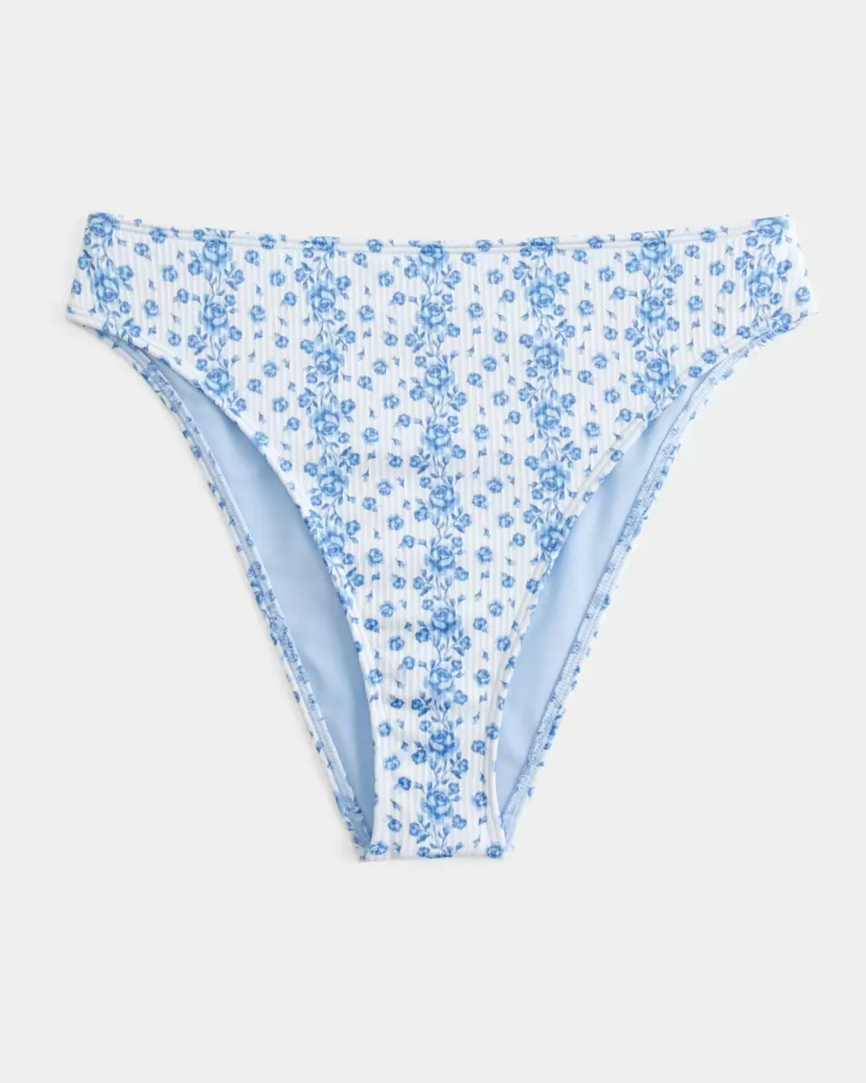 Designed with a flattering curvy high-leg high-waist silhouette, this cute bikini bottom features soft ribbed swim fabric and cheeky coverage.