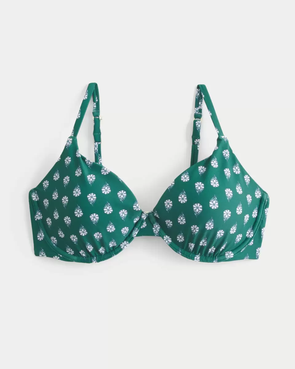 Your new fave bikini top is designed with a curvy underwire plunge silhouette. Soft swim fabric, adjustable straps, swan hook closure. Imported.