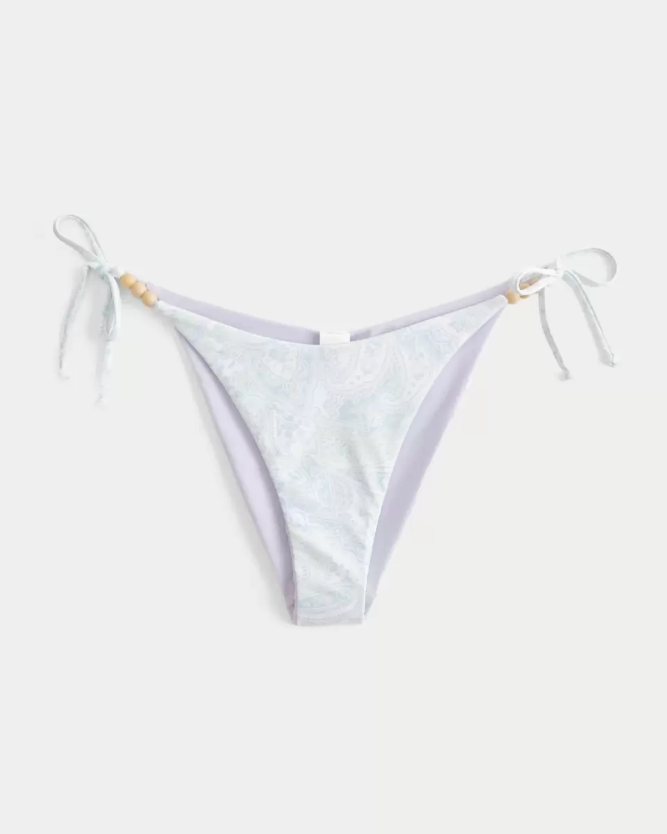 A cute reversible bikini bottom with side ties and bead details. Cheeky coverage. Imported.