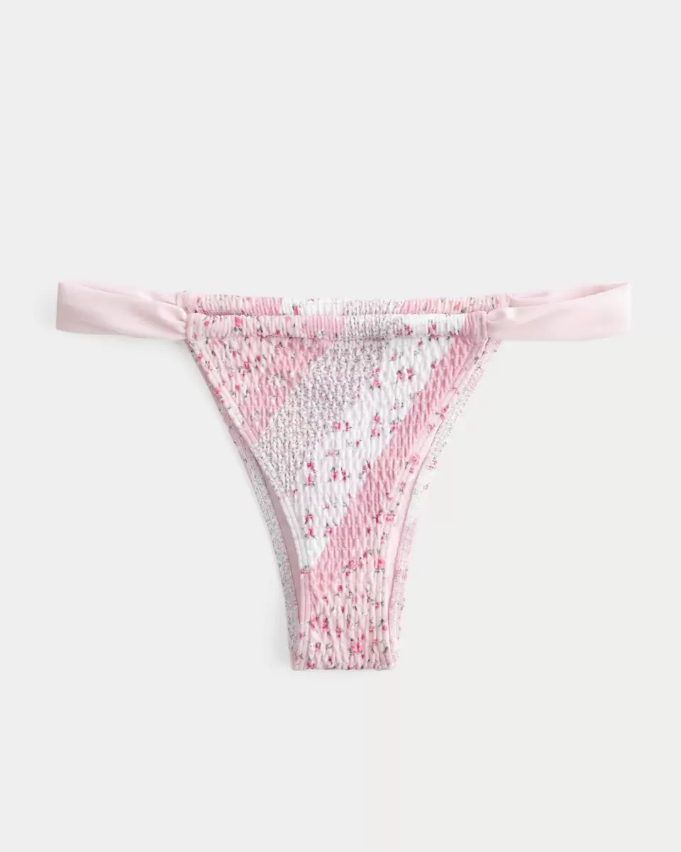 This cute and comfy bikini bottom is made with soft smocked swim fabric. Side straps, high-leg silhouette, cheekiest coverage. Imported.
