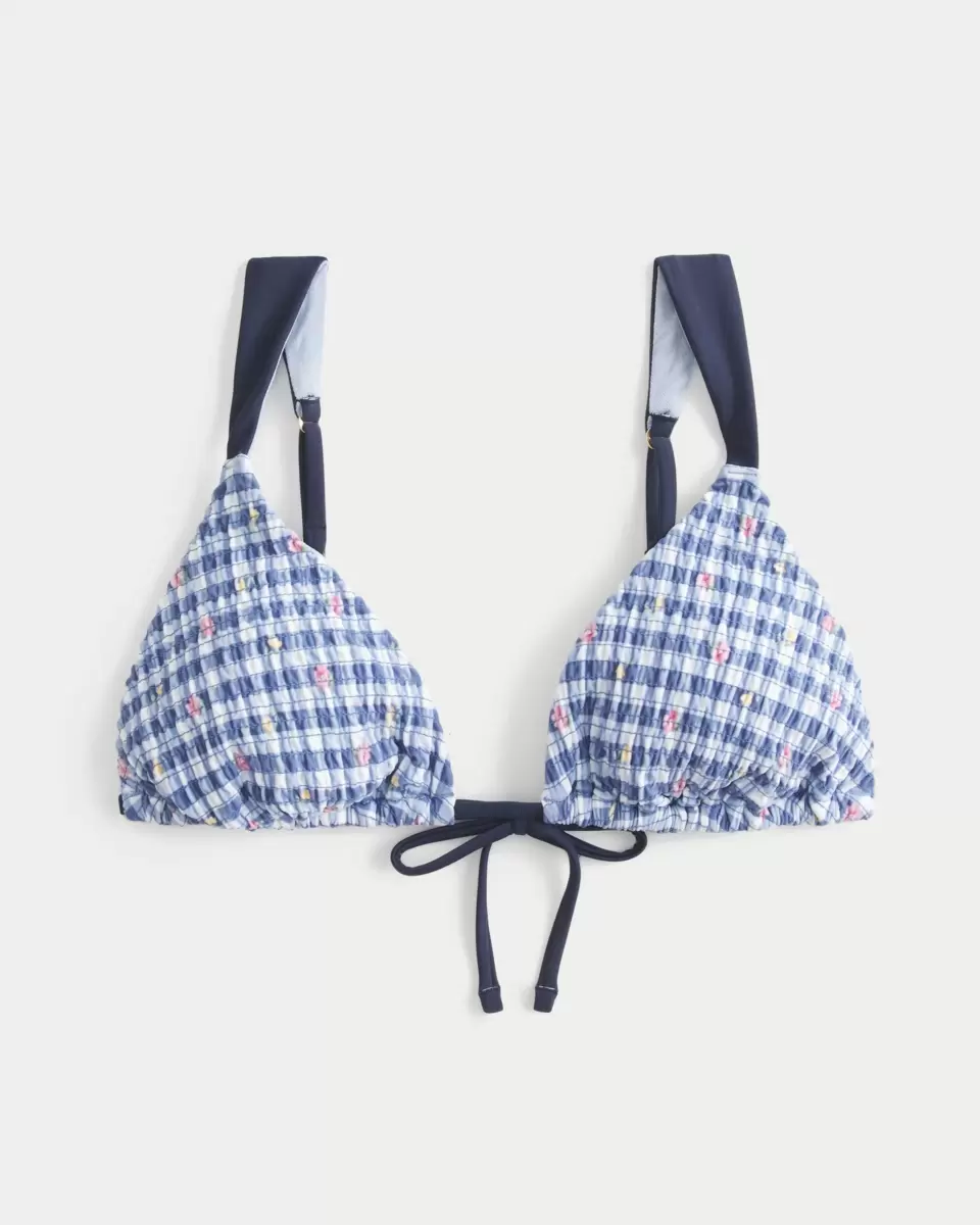 Cute and comfy, this bikini top is made with soft smocked swim fabric. Tie closure, over-the-shoulder straps, removable padding, triangle silhouette. Imported.