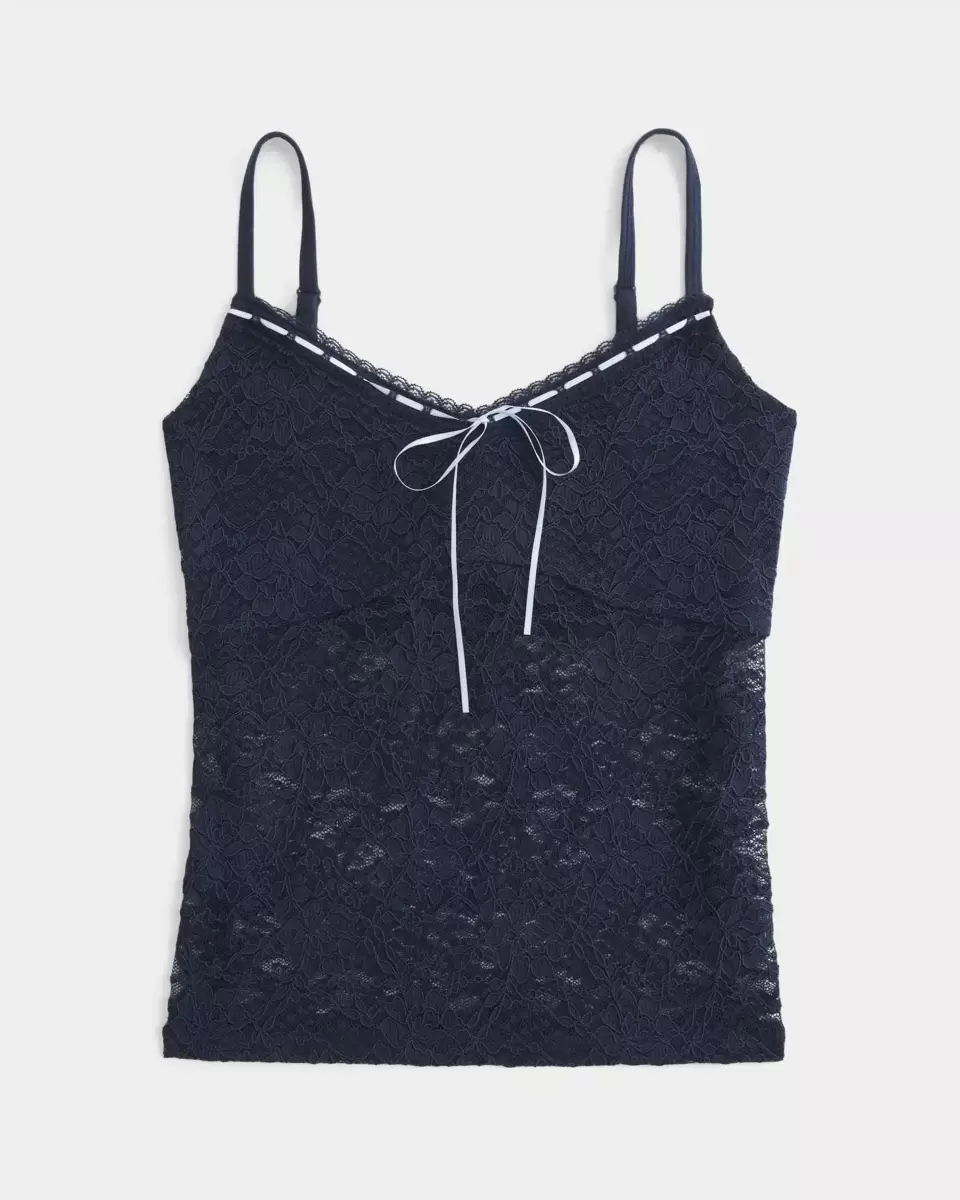 A pretty cami in super soft all-over lace, featuring scalloped trim at the neckline and a pretty bow detail. Double-lined at bust, adjustable straps, v-neckline. Slim Fit. Imported.