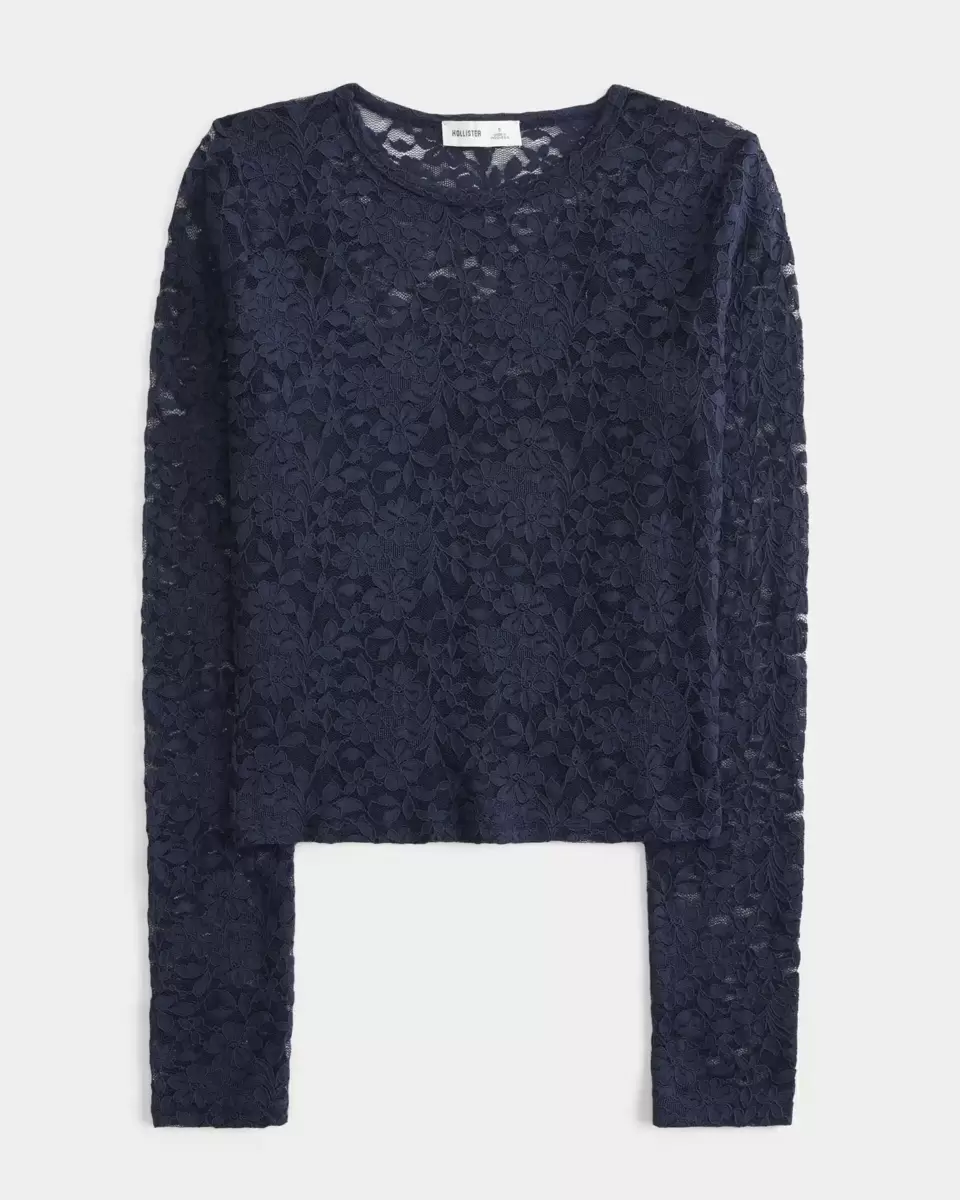 This super soft top features pretty all-over lace detailing, a crew neckline and long sleeves. Inner layer. Slim Fit. Imported.