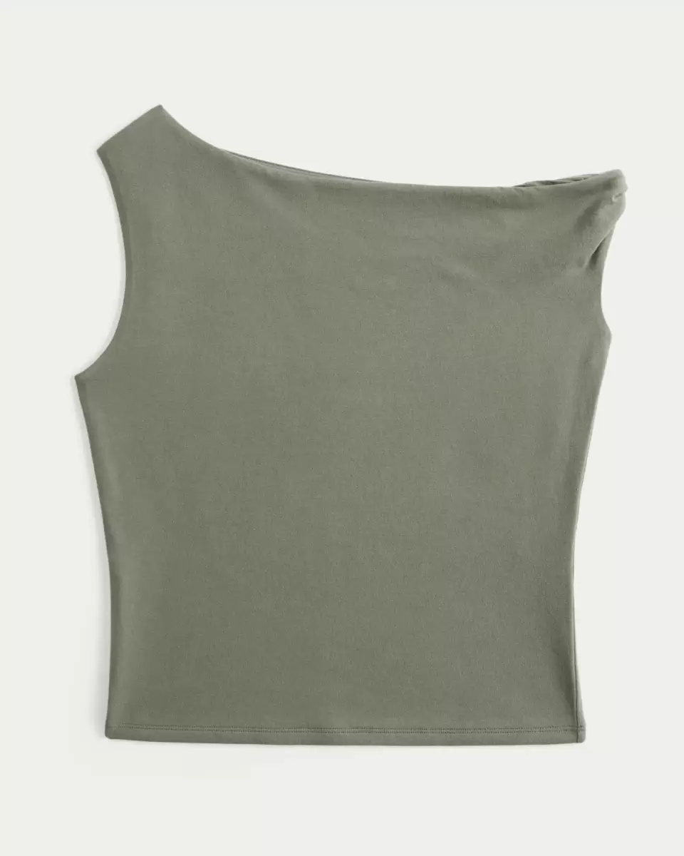 This pretty, super soft top features an asymmetrical off-the-shoulder neckline with a subtle twist detail. Imported.