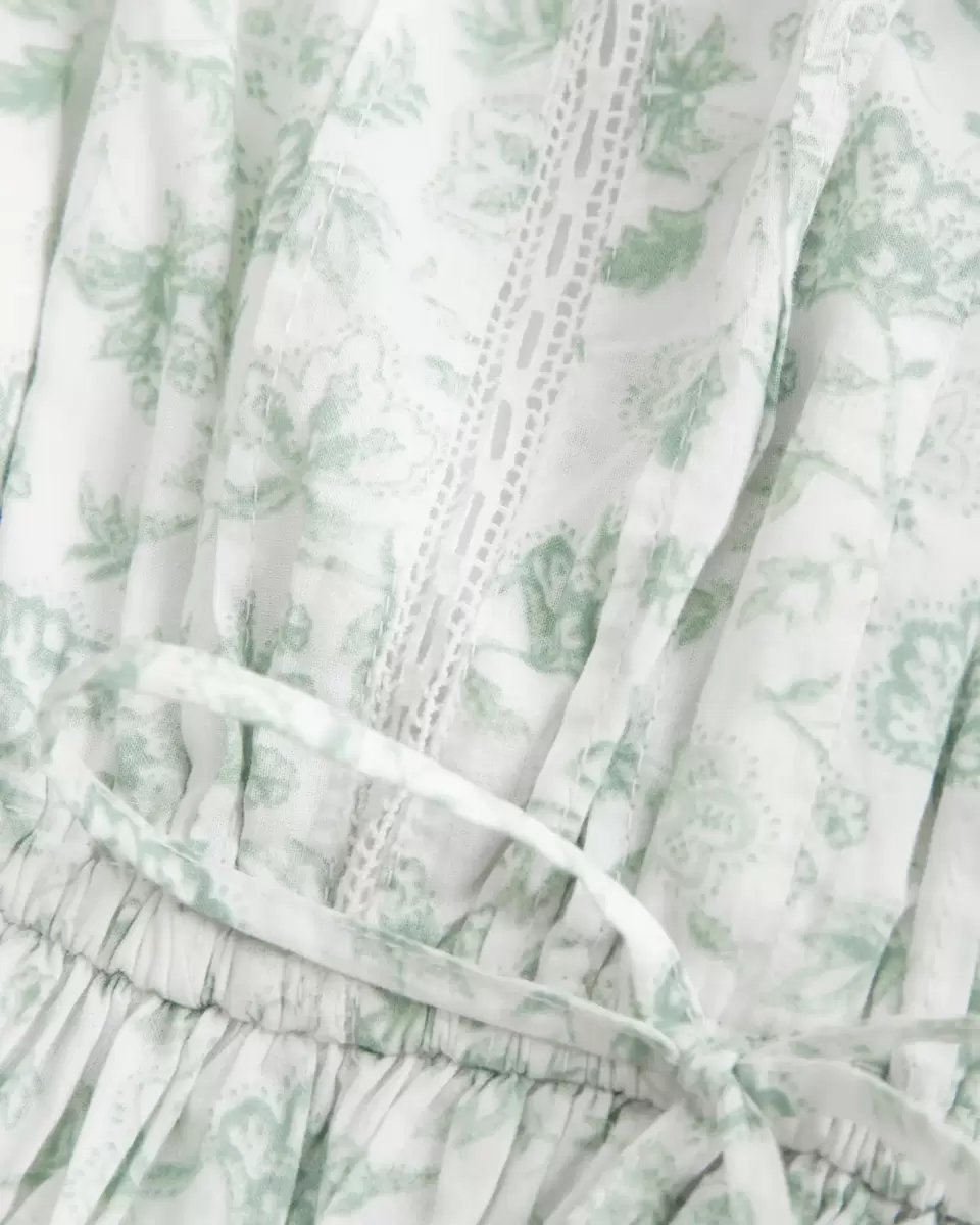 This super soft tube top is perfect for warm, sunny weather! Made with voile fabric, strapless silhouette with ties at the neckline and waist, pretty lace insets, ruffle trims. Easy Fit. Imported.