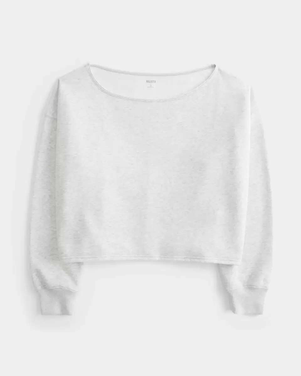 A cozy and super soft sweatshirt with long sleeves and an off-the-shoulder neckline. Easy Fit. Imported.