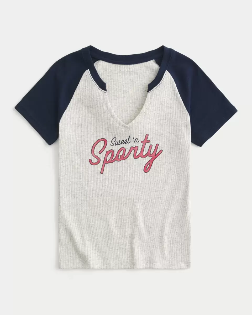 A cute and comfy baby tee in soft ribbed fabric, designed with a slightly shrunken silhouette. Notch neckline, Sweet ‘n Sporty print graphics, short sleeves. Easy Fit. Imported.