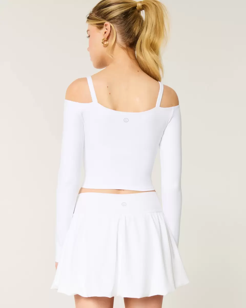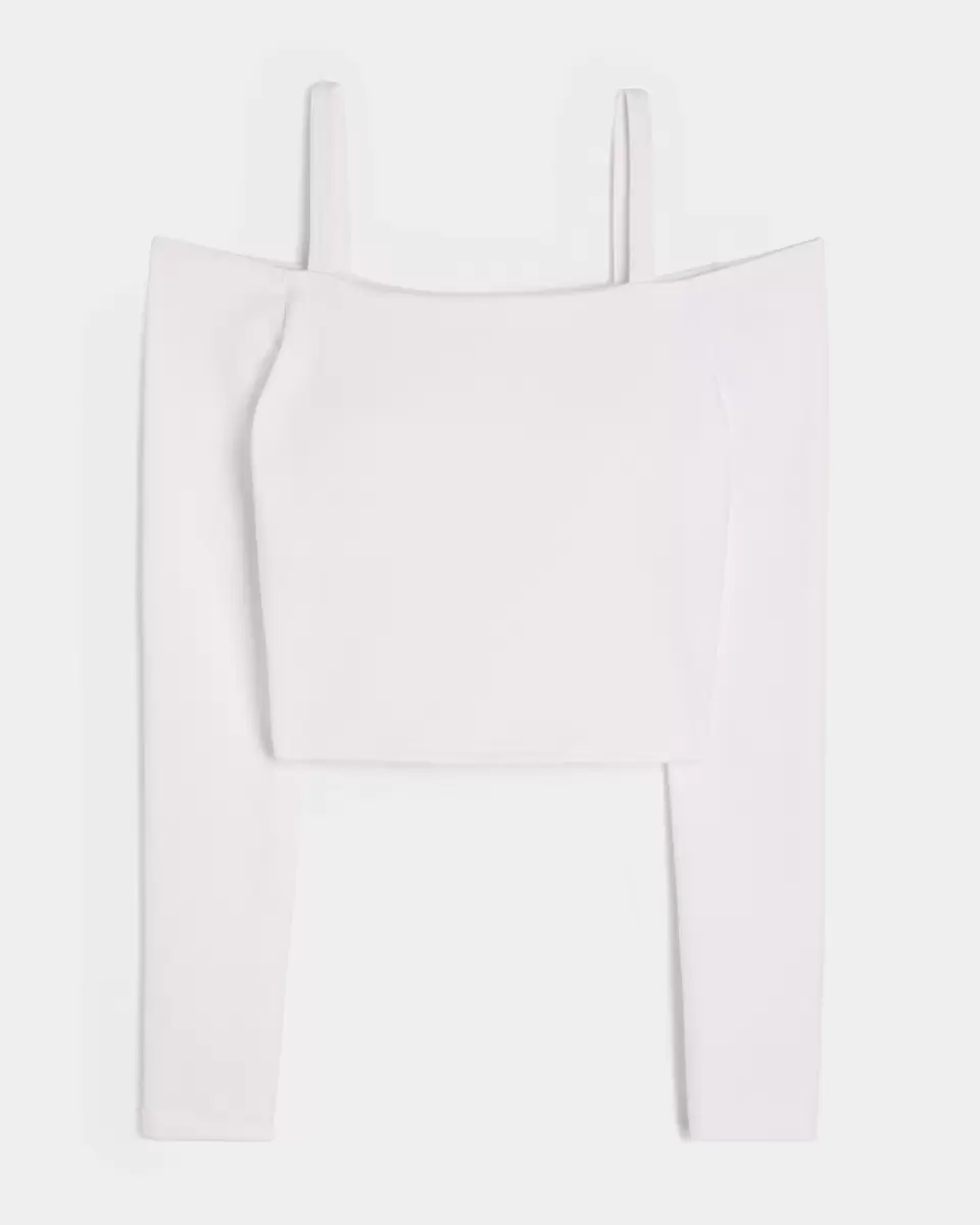 This super cute top is designed in our breathable, 4-way stretch, moisture-wicking Recharge fabric with a super soft, brushed feel. Off-the-shoulder neckline with thin shoulder straps, built-in shelf bra with removable pads. Long sleeves. Imported.