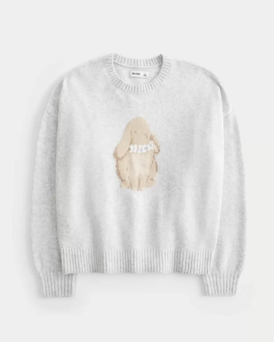 This super soft and cozy sweater features a cute bunny intarsia graphic, crew neckline and long sleeves. Ribbed trims. Imported.