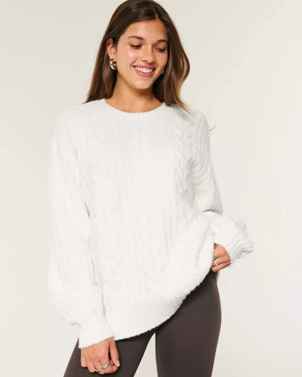 An unbelievably cozy sweatshirt in our super soft Comfy Cloud knit fabric, featuring classic cable-knit patterns. Crew neckline, long sleeves, ribbed trims. Oversized Fit.