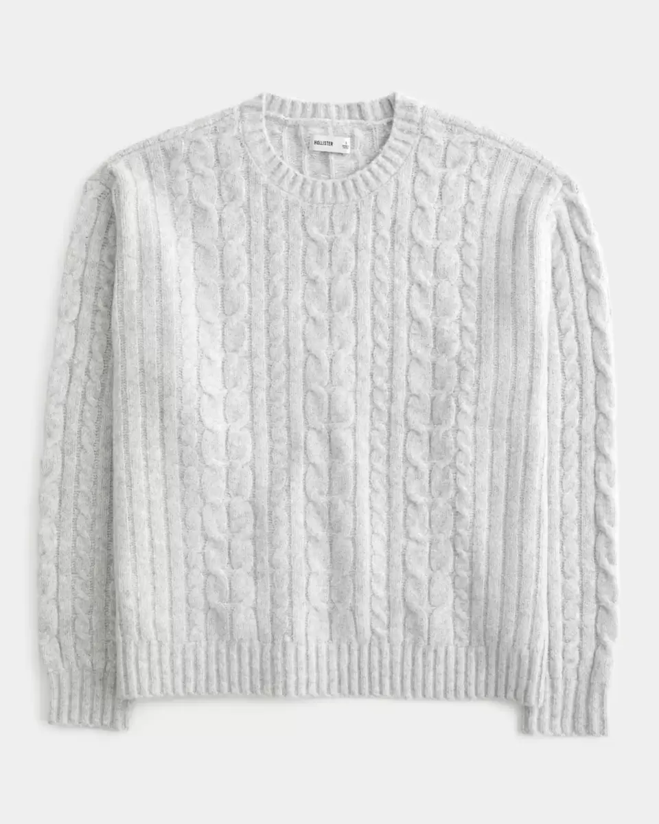 Unbelievably soft and comfy, this sweater features classic cable-knit patterns and a crew neckline. Ribbed trims. Oversized Fit. Imported.