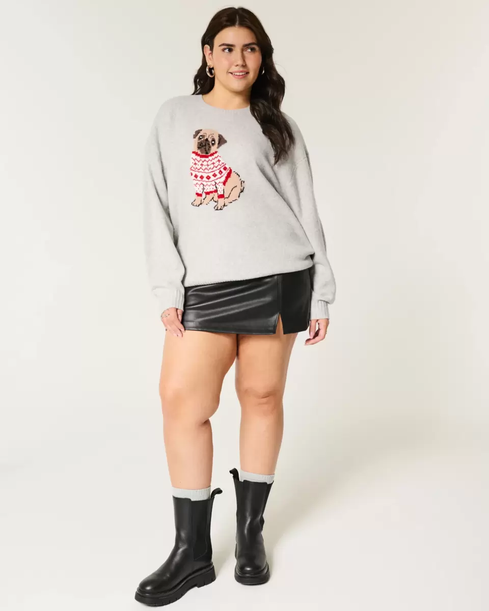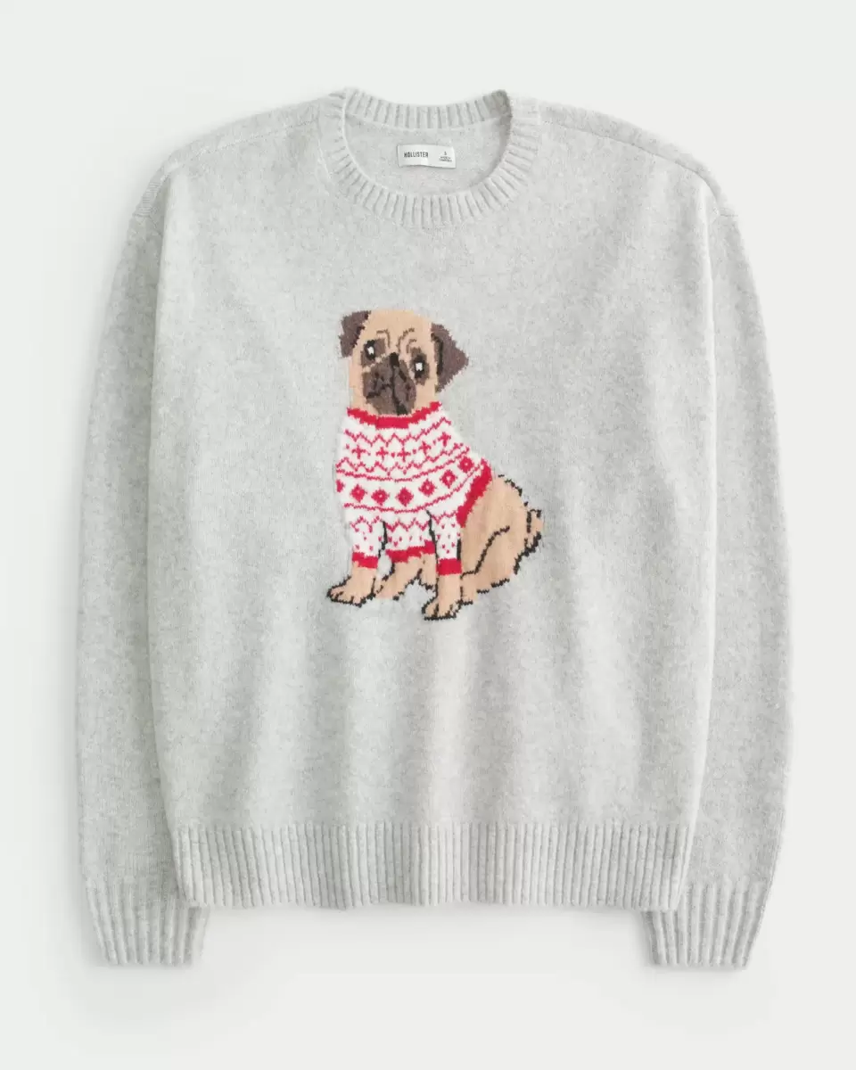 A super soft sweater in unbelievably cozy knit fabric, featuring a cute puppy intarsia graphic. Crew neckline, long sleeves, ribbed trims. Oversized Fit. Imported.