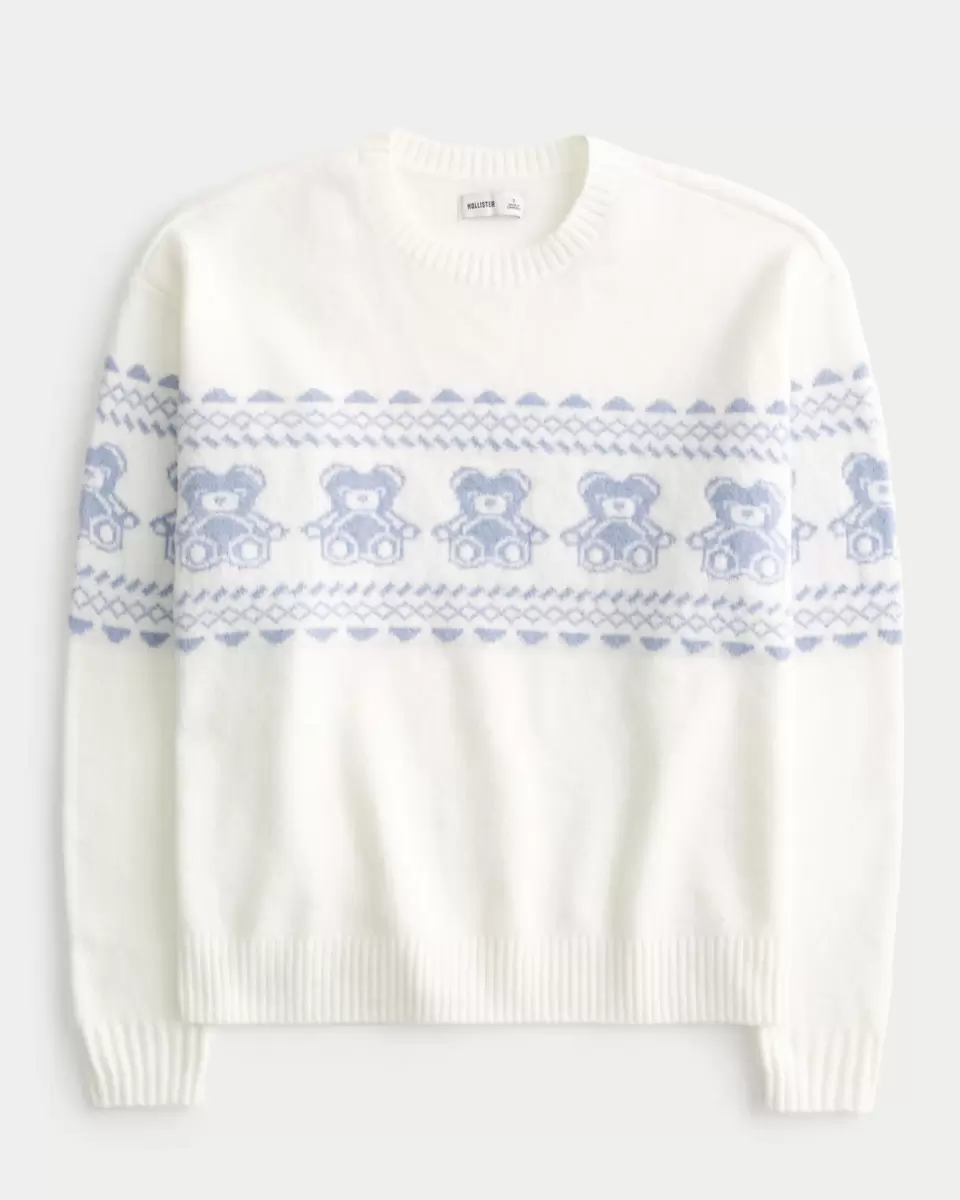 Hollister Comfy Cloud Teddy Bear Graphic Crew Sweater