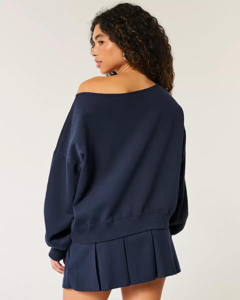 This cozy and super soft fleece sweatshirt features Paris graphic applique and an off-the-shoulder neckline. Long sleeves, mini silhouette. Imported.