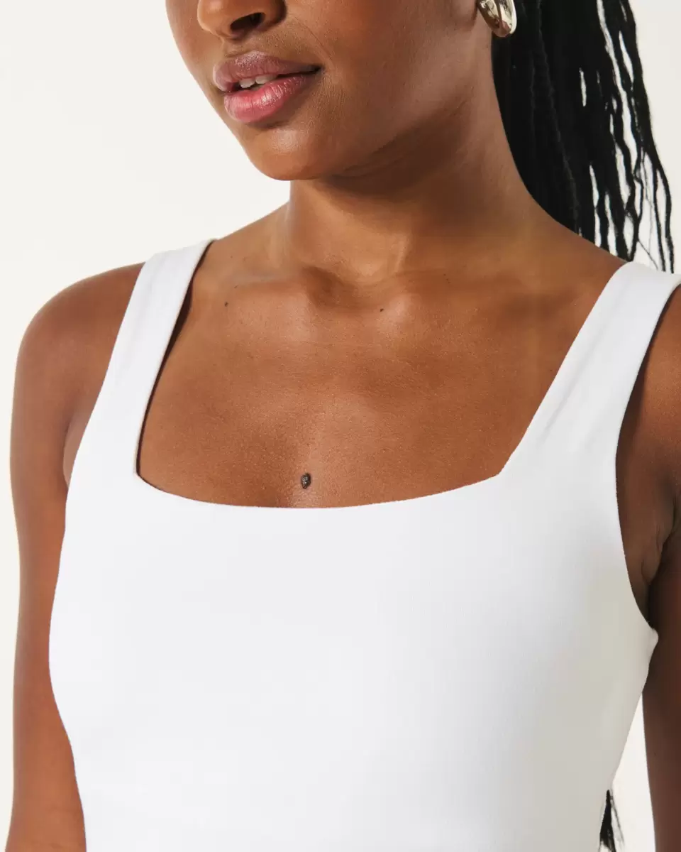 This cute tank is made with super soft fabric with a seamless look and feel. Square neckline, shelf bra, stretch. Slim Fit.