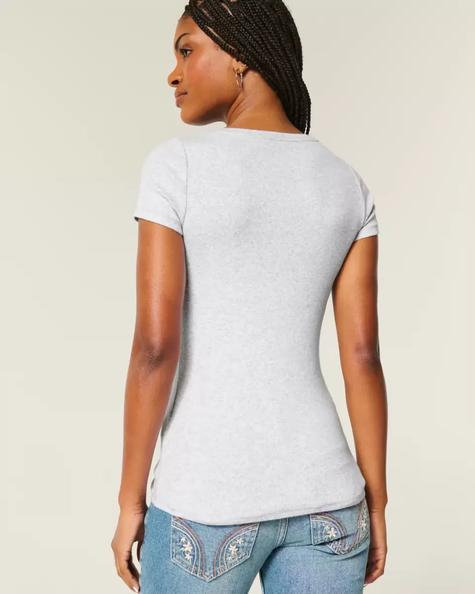 A super soft and comfy Y2K-inspired henley with short sleeves and a button placket. Longer length. Slim Fit. Imported.