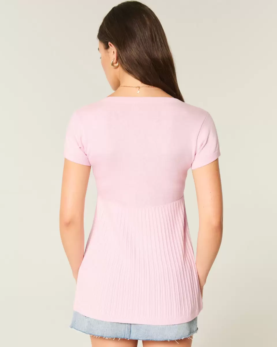 Perfect for layering with a cami or on its own, this cozy and super soft Y2K-inspired henley babydoll top features a flowy hem with ribbed texture, short sleeves and a button plack